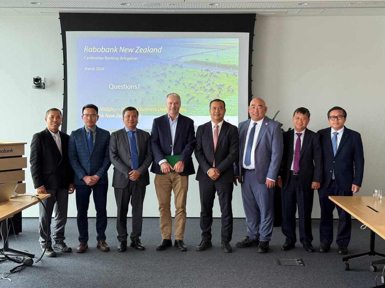 នូវែលហ្សេឡង់: នៅថ្ងៃទី១៦ ខែមីនា ឆ្នាំ២០២៦នេះ ក្នុងដំណើរបំពេញទស្សនកិច្ចការងារនៅប្រទេសនូវែលហ្សេឡង់ ឯកឧត្តមបណ្ឌិត កៅ ថាច ប្រតិភូរាជរដ្ឋាភិបាល ទទួលបន្ទុកជាអគ្គនាយកនៃធនាគារអភិវឌ្ឍន៍កសិកម្ម និងជនបទ (ARDB) បានអញ្ជើញជួបពិភាក្សាការងារ និងផ្លាស់ប្តូរបទពិសោធន៍ការងារ ជាមួយ តំណាងធនាគារ Rabobank ក្រោមការសម្របសម្រួលពី លោក ឃួយ ម៉ៃខល ប្រធានការិយាល័យតំណាងសភាពាណិជ្ជកម្មកម្ពុជា ប្រចាំប្រទេសនូវែលហ្សេឡង់។