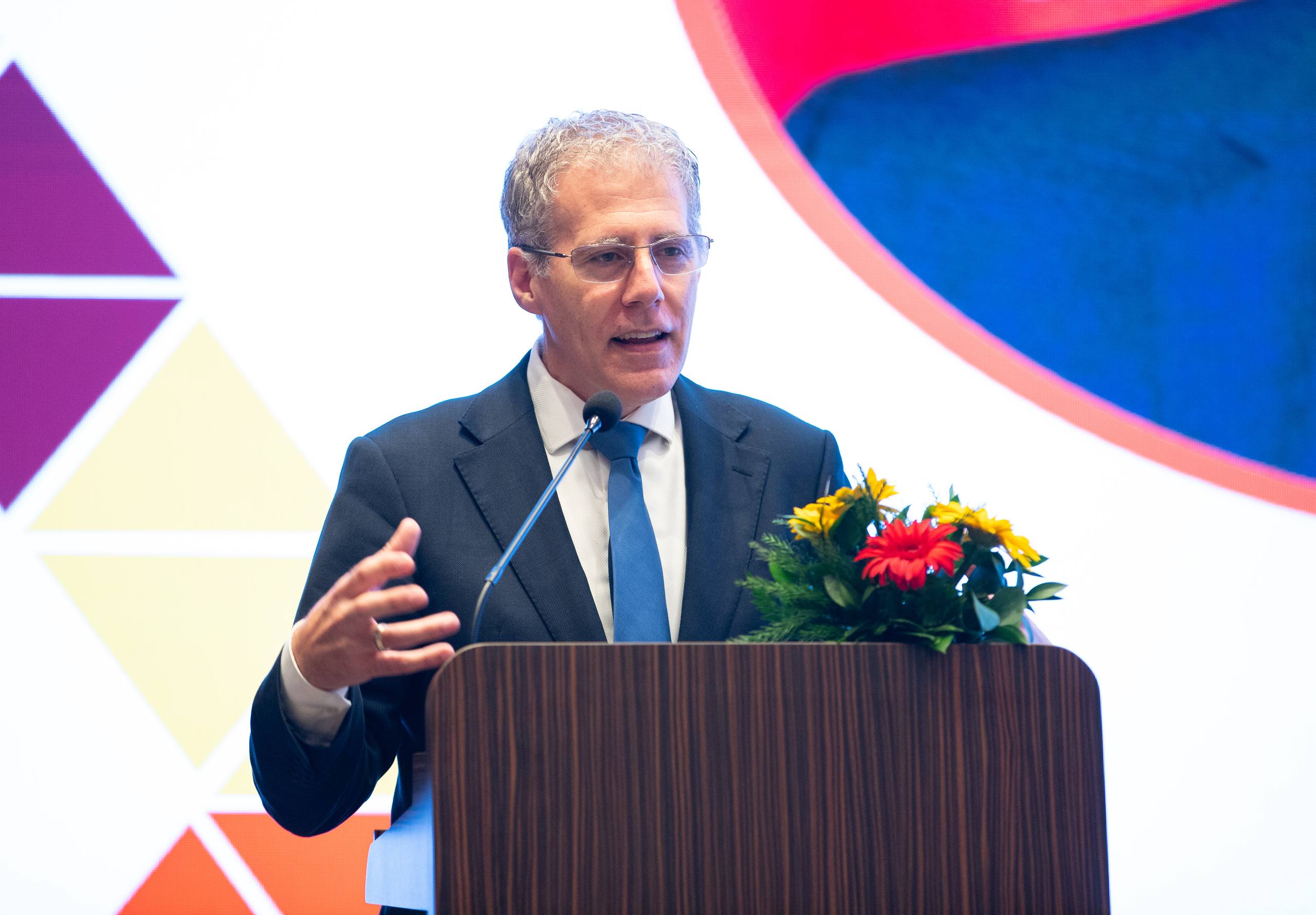 ក្នុងវេទិកាដែលធ្វើឡើងនៅសណ្ឋាគារ Hyatt Regency ភ្នំពេញ ឯកឧត្ដមរដ្ឋមន្រ្តី បានថ្លែងនូវអំណរគុណចំពោះឯកឧត្ដម Christian DesRoches ឯកអគ្គរដ្ឋទូតកាណាដាប្រចាំកម្ពុជា និងលោកស្រី Froukje Boele ប្រធានគម្រោងរោងចក្រកាន់តែប្រសើរនៅកម្ពុជា (ILO-BFC) ដែលបានសហការរៀបចំវេទិកានាពេលនេះ ជាវេលាដ៏សមស្របមួយខណៈស្ថានភាពពិភពលោកកាន់តែមិនប្រាកដប្រជា និងជះផលអវិជ្ជមានជាច្រើនលើសេដ្ឋកិច្ច ដែលតម្រូវឱ្យយើងកាន់តែរួមគ្នាជម្នះរាល់ឧបសគ្គស្វែងរកដំណោះស្រាយ ដើម្បីអាចរក្សាបាននូវបរិយាកាសវិនិយោគ និងរក្សាបាននូវការងារជូនបងប្អូនកម្មករនិយោជិត ជាពិសសក្នុងវិស័យកាត់ដេរសម្លៀកបំពាក់ ស្បែកជើង និងផលិតផលធ្វើដំណើរនៅកម្ពុជា (GFT)។