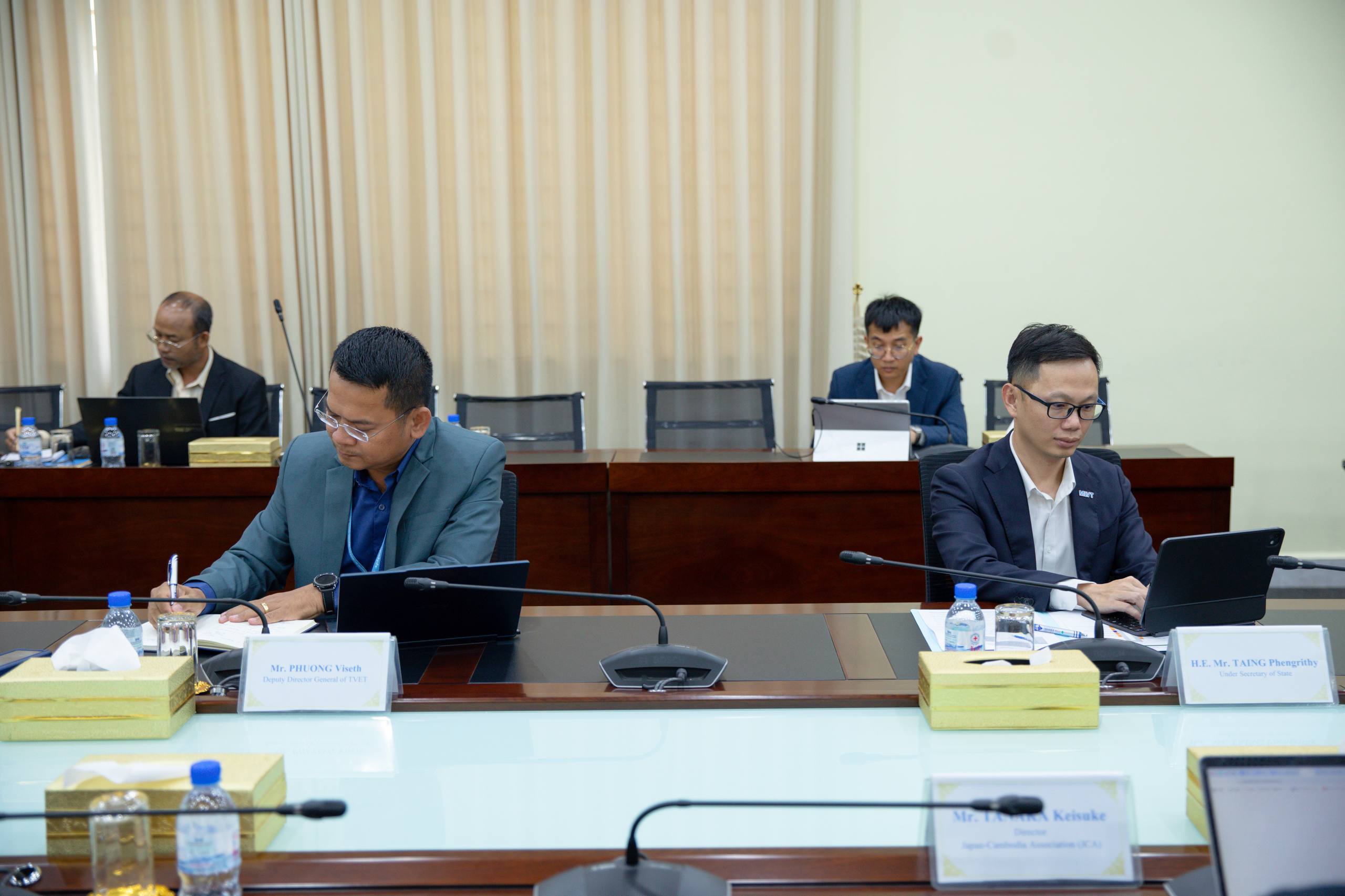 ឯកឧត្តមរដ្ឋមន្រ្តី បានលើកទឹកចិត្តឱ្យ JCA ពិចារណាស្វែងរកវិធីសាស្រ្តគន្លឹះក្នុងការបណ្តុះបណ្តាលភាសាជប៉ុនឱ្យកាន់តែងាយស្រួល និងឆាប់ចេះនិយាយ ជាពិសេសពាក់ព័ន្ធនឹងពាក្យបច្ចេកទេសដែលជាបញ្ហាប្រឈមមួយនាពេលកន្លងមក។