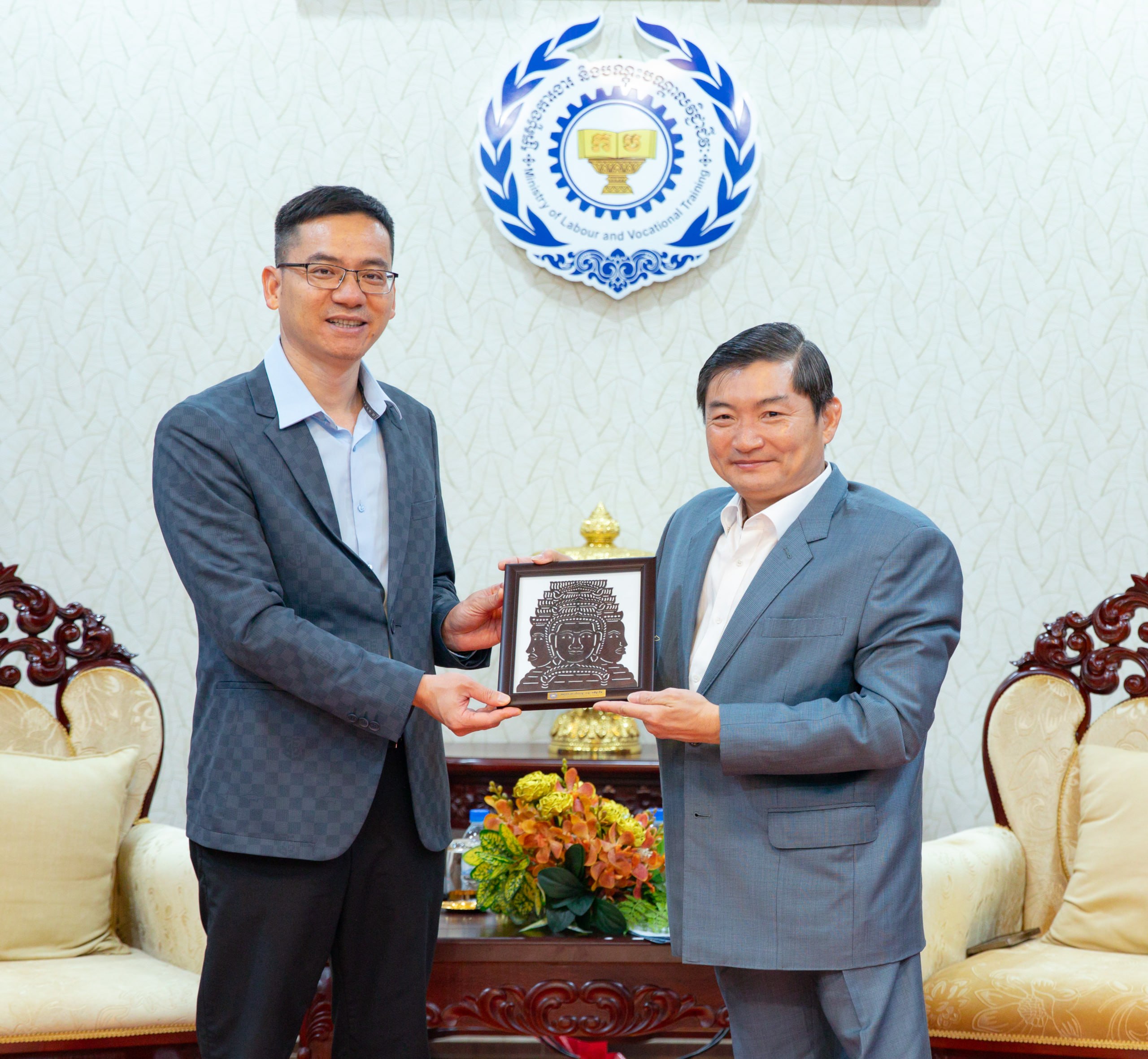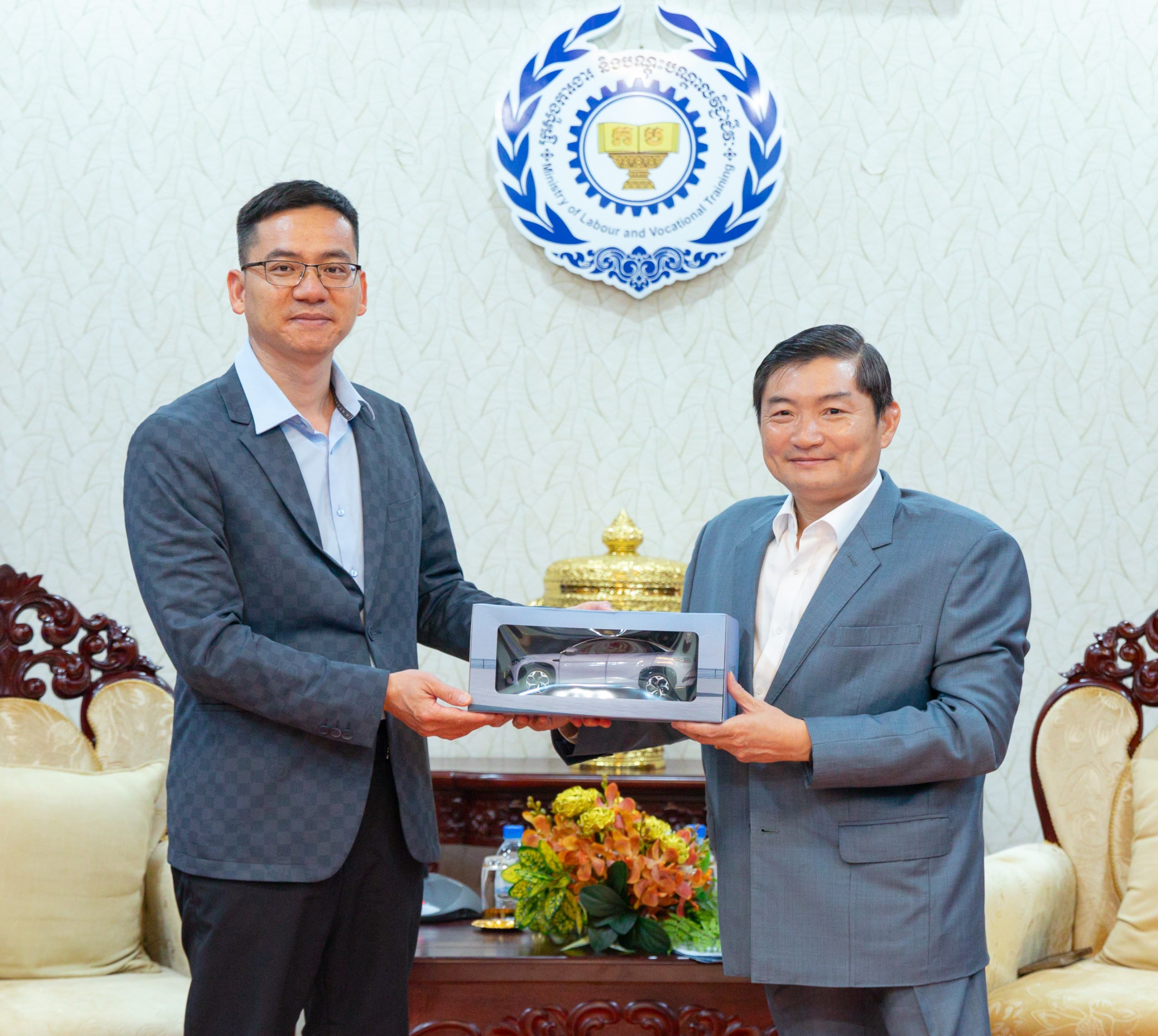 (ភ្នំពេញ)៖ ឯកឧត្តម ហេង សួរ រដ្ឋមន្ត្រីក្រសួងការងារ និងបណ្ដុះបណ្ដាលវិជ្ជាជីវៈបានទទួលជួបសម្ដែងការគួរសម និងពិភាក្សាការងារជាមួយ លោក យៀក ឆឹងហ៊ុយ (Ye Chenghui) ប្រធានផ្នែកលក់នៃក្រុមហ៊ុន BYD (Cambodia) Co., Ltd. និងជានាយកផ្នែកលក់រថយន្តប្រចាំតំបន់អាស៊ីប៉ាស៊ីហ្វិករបស់ក្រុមហ៊ុន BYD នាព្រឹកថ្ងៃទី១ ខែមេសា ឆ្នាំ២០២៦ នៅទីស្តីការក្រសួង ដើម្បីផ្លាស់ប្តូរយោបល់លើការបង្កើតឱកាសពង្រឹងកិច្ចសហប្រតិបត្តិការក្នុងការអភិវឌ្ឍកម្លាំងពលកម្មជំនាញយានយន្តអគ្គិសនី (EV) ក្នុងទិសដៅបំពេញតម្រូវការទីផ្សារ និងចូលរួមថែរក្សាបរិស្ថាននៅកម្ពុជា ជាពិសេសក្នុងពេលមានវិបត្តិប្រេងឥន្ធនៈសកល។
