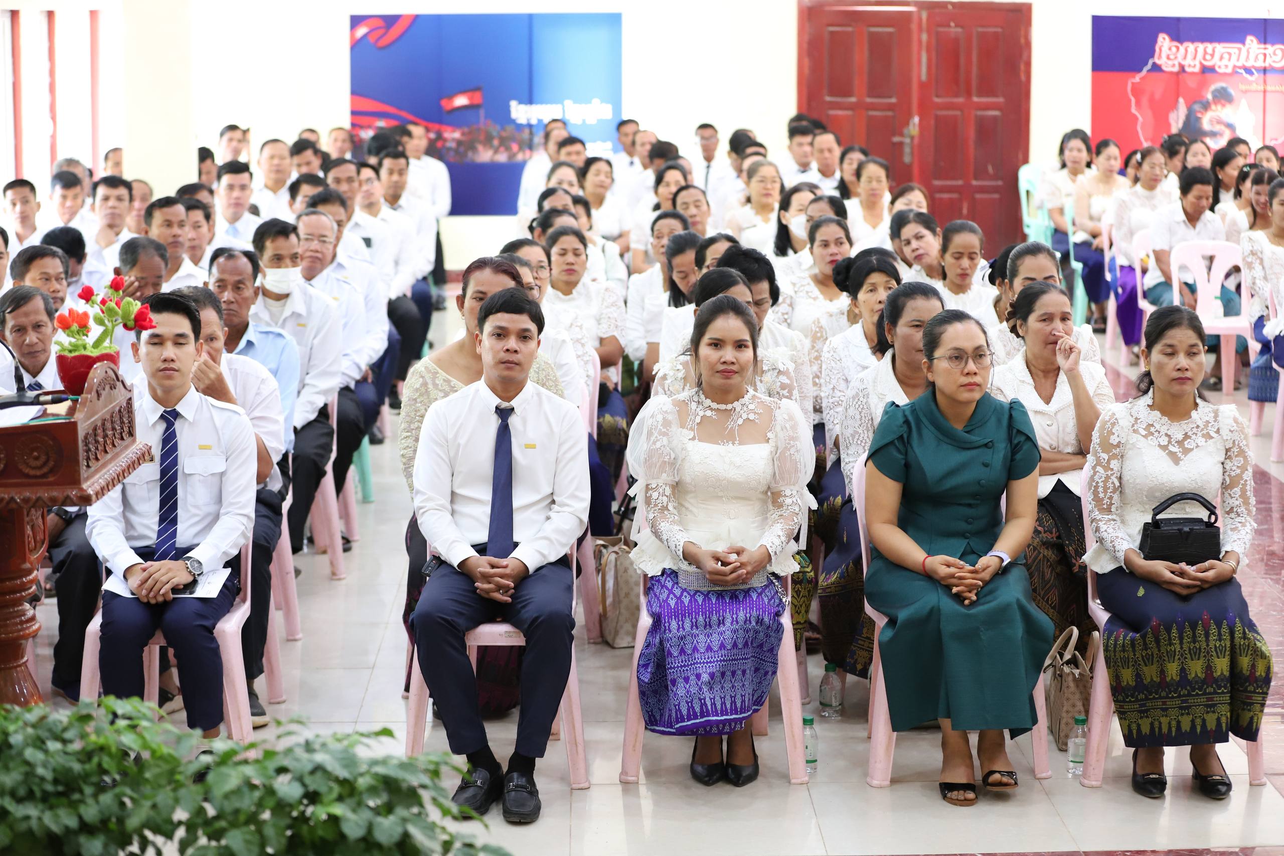 នៅក្នុងពិធីបំពាក់មេដាយសំរឹទ្ធការងារដល់មន្ត្រីរាជការ និងមន្ត្រីជាប់កិច្ចសន្យានេះដែរគឺ ដោយសារតែមន្រ្តីរាជការទាំងនេះកន្លងទៅបានបំពេញការងារលើសពី ១០ឆ្នាំ និងមិនធ្លាប់ទទួលបានគ្រឿងឥស្សរិយយសកន្លងមកនោះទេ ។ពិធីនេះក៏មានការអញ្ជើញចូលរួមពី លោក ចេង ឌីណា អភិបាលនៃគណៈអភិបាលស្រុកខ្សាច់កណ្តាល,ក្រុមប្រឹក្សាស្រុក នាយក នាយករងរដ្ឋបាលស្រុកមន្ត្រីរាជការ បុគ្គលិកអប់រំ គ្រូបង្រៀន ជាប់កិច្ចសន្យាដែលសរុបអ្នកចូលរួមចំនួន ២៥០ នាក់។