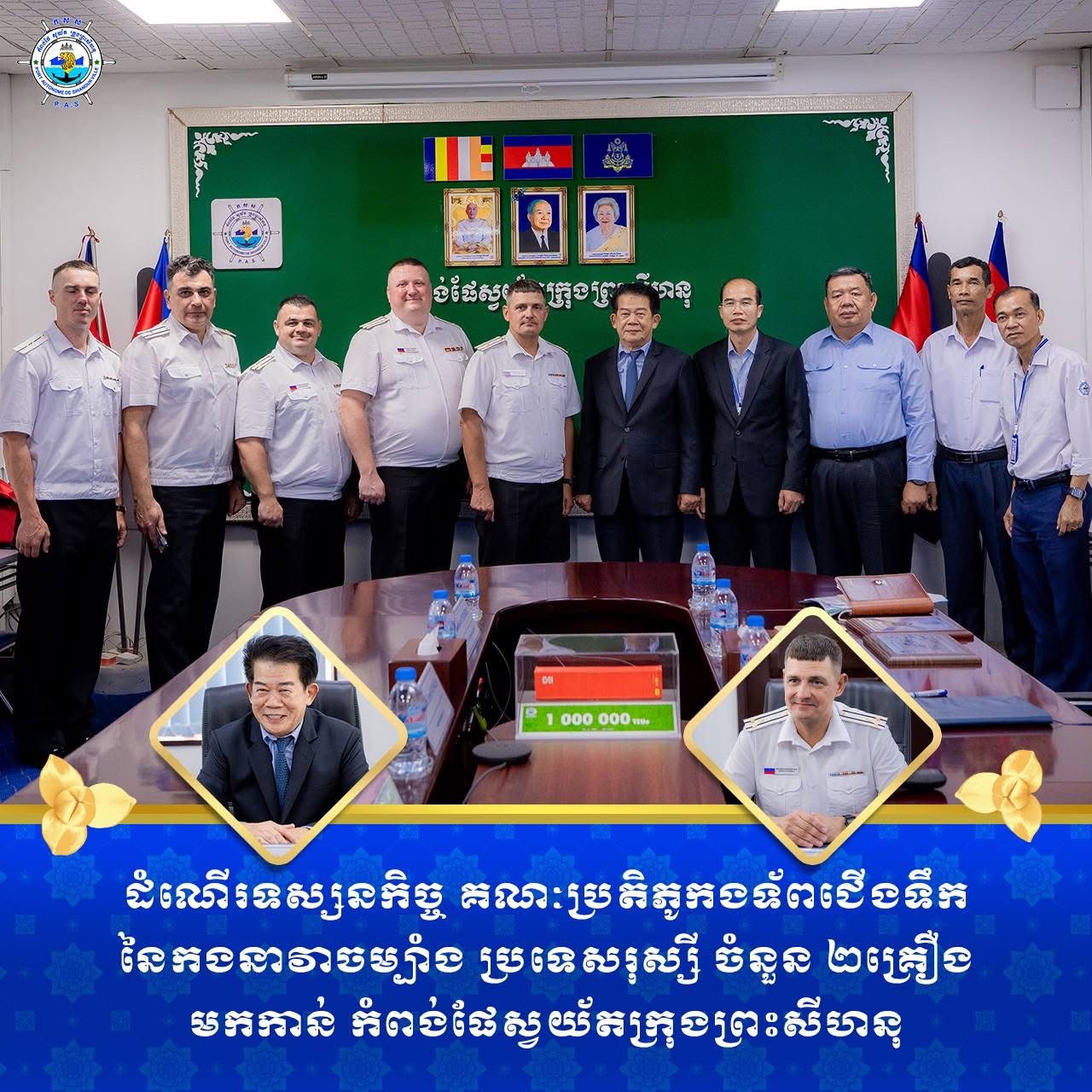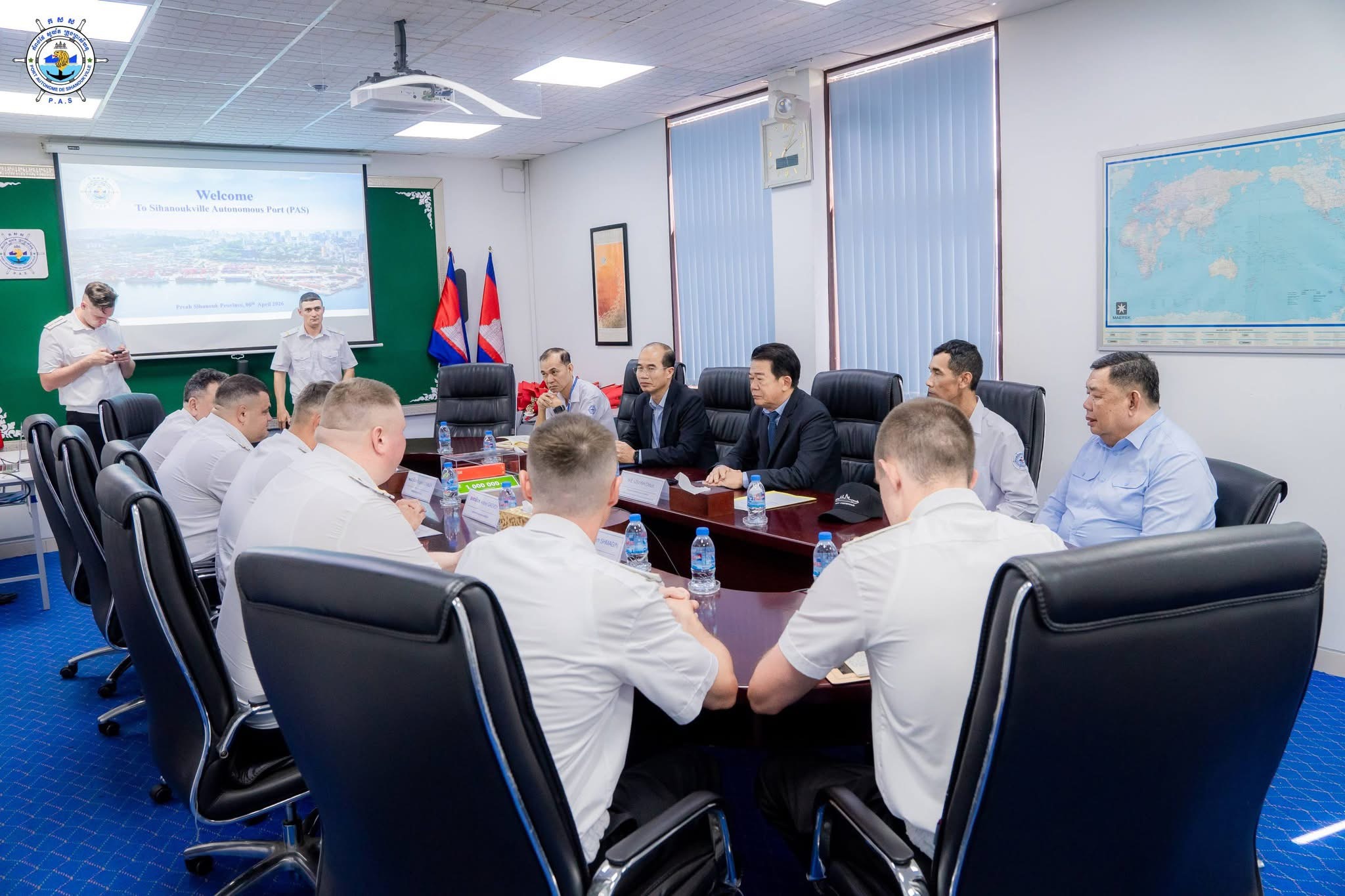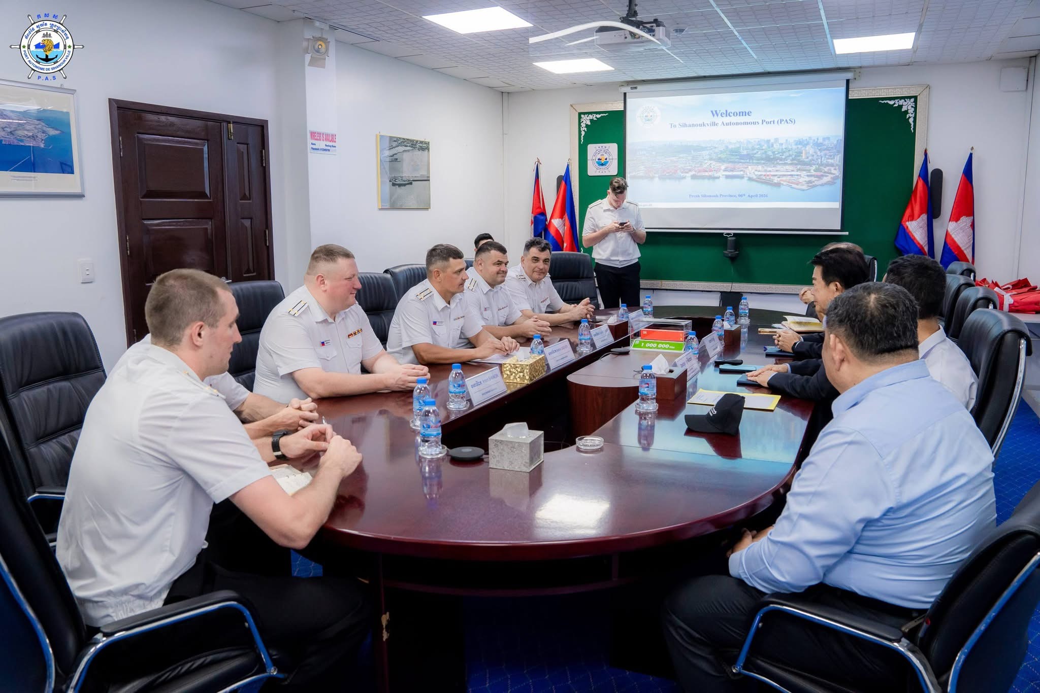 កំពង់ផែស្វយ័តក្រុងព្រះសីហនុ (កសស) ៖ នាវេលាម៉ោង ២ រសៀល ថ្ងៃចន្ទទី៦ ខែមេសា ឆ្នាំ២០២៦នេះ នៅសាលប្រជុំតូច កសស ឯកឧត្តម លូ គឹមឈន់ ប្រតិភូរាជរដ្ឋាភិបាលកម្ពុជា ទទួលបន្ទុកជាប្រធានអគ្គនាយក កំពង់ផែស្វយ័តក្រុងព្រះសីហនុ និងថ្នាក់ដឹកនាំ កសស បានទទួលស្វាគមន៍ ដំណើរទស្សនកិច្ចសម្តែងការគួរសមនៃ គណៈប្រតិភូកងទ័ពជើងទឹក នៃកងនាវាចម្បាំង ប្រទេសរុស្សី ចំនួន ២ គ្រឿង (នាវា Sovershenny លេខ ៣៣៣ និងនាវា Rezky លេខ ៣៤៣) ដឹកនាំដោយ លោកវរនាវីឯក អេនឌ្រា ហ្គេវ៉យ (Andrei GAEVOY) មេបញ្ជាការរង និងជាប្រធានក្រុមកងនាវាប៉ាស៊ីហ្វិក នៃកងទ័ពជើងទឹករុស្សី ក្នុងគោលបំណងពង្រឹងចំណងមិត្តភាពរវាង ព្រះរាជាណាចក្រកម្ពុជា និងសហព័ន្ធរុស្សី។