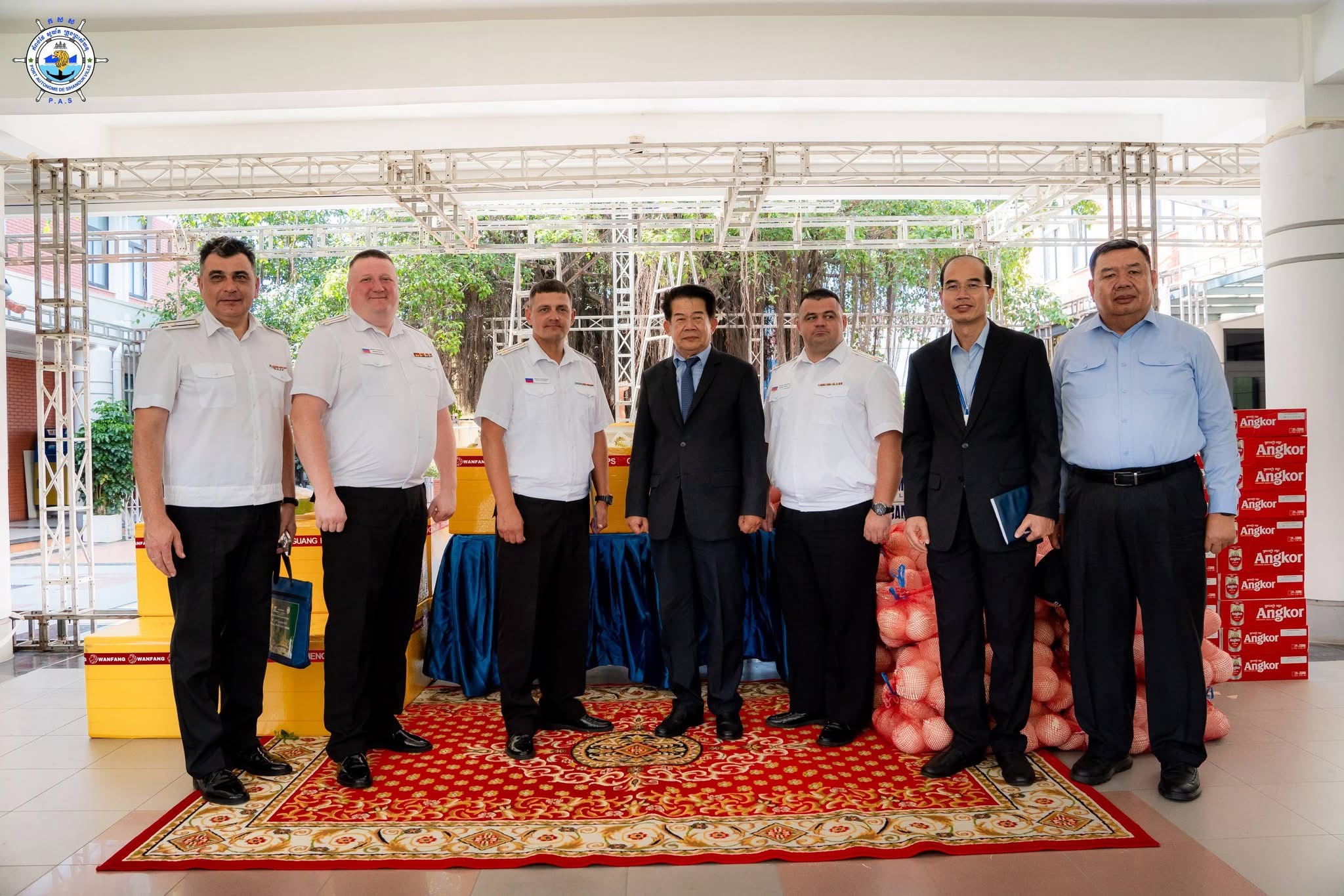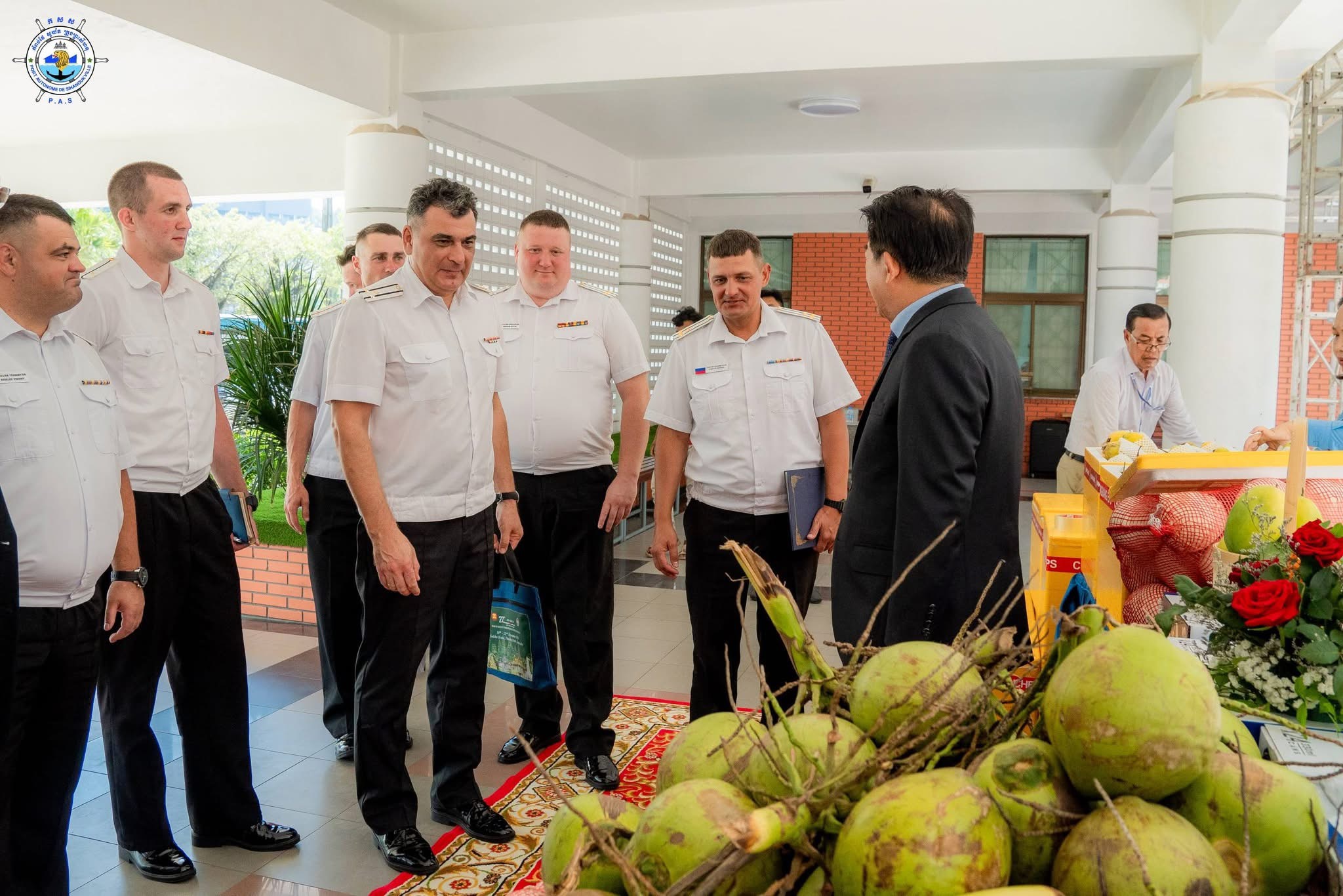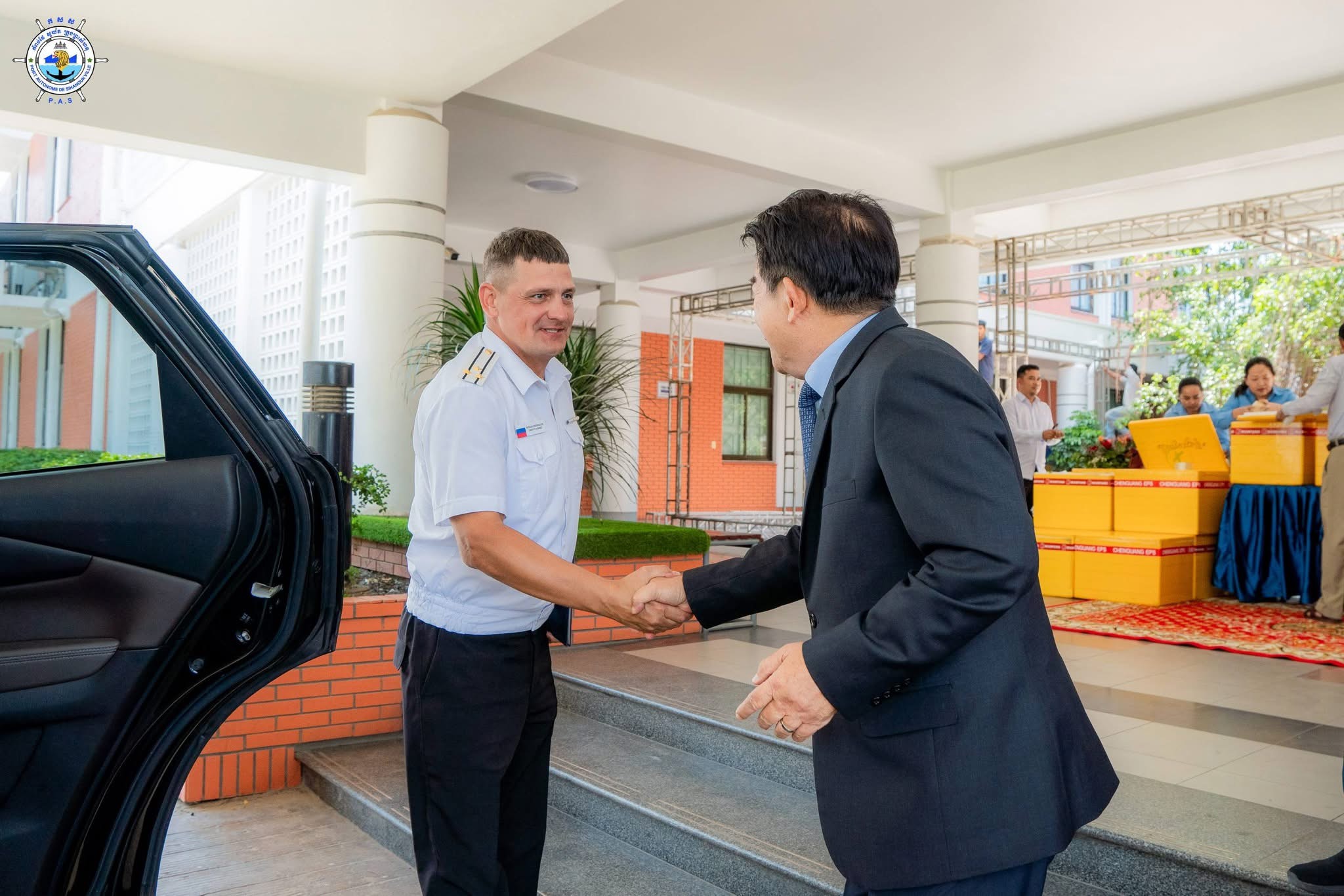 កំពង់ផែស្វយ័តក្រុងព្រះសីហនុ (កសស) ៖ នាវេលាម៉ោង ២ រសៀល ថ្ងៃចន្ទទី៦ ខែមេសា ឆ្នាំ២០២៦នេះ នៅសាលប្រជុំតូច កសស ឯកឧត្តម លូ គឹមឈន់ ប្រតិភូរាជរដ្ឋាភិបាលកម្ពុជា ទទួលបន្ទុកជាប្រធានអគ្គនាយក កំពង់ផែស្វយ័តក្រុងព្រះសីហនុ និងថ្នាក់ដឹកនាំ កសស បានទទួលស្វាគមន៍ ដំណើរទស្សនកិច្ចសម្តែងការគួរសមនៃ គណៈប្រតិភូកងទ័ពជើងទឹក នៃកងនាវាចម្បាំង ប្រទេសរុស្សី ចំនួន ២ គ្រឿង (នាវា Sovershenny លេខ ៣៣៣ និងនាវា Rezky លេខ ៣៤៣) ដឹកនាំដោយ លោកវរនាវីឯក អេនឌ្រា ហ្គេវ៉យ (Andrei GAEVOY) មេបញ្ជាការរង និងជាប្រធានក្រុមកងនាវាប៉ាស៊ីហ្វិក នៃកងទ័ពជើងទឹករុស្សី ក្នុងគោលបំណងពង្រឹងចំណងមិត្តភាពរវាង ព្រះរាជាណាចក្រកម្ពុជា និងសហព័ន្ធរុស្សី។