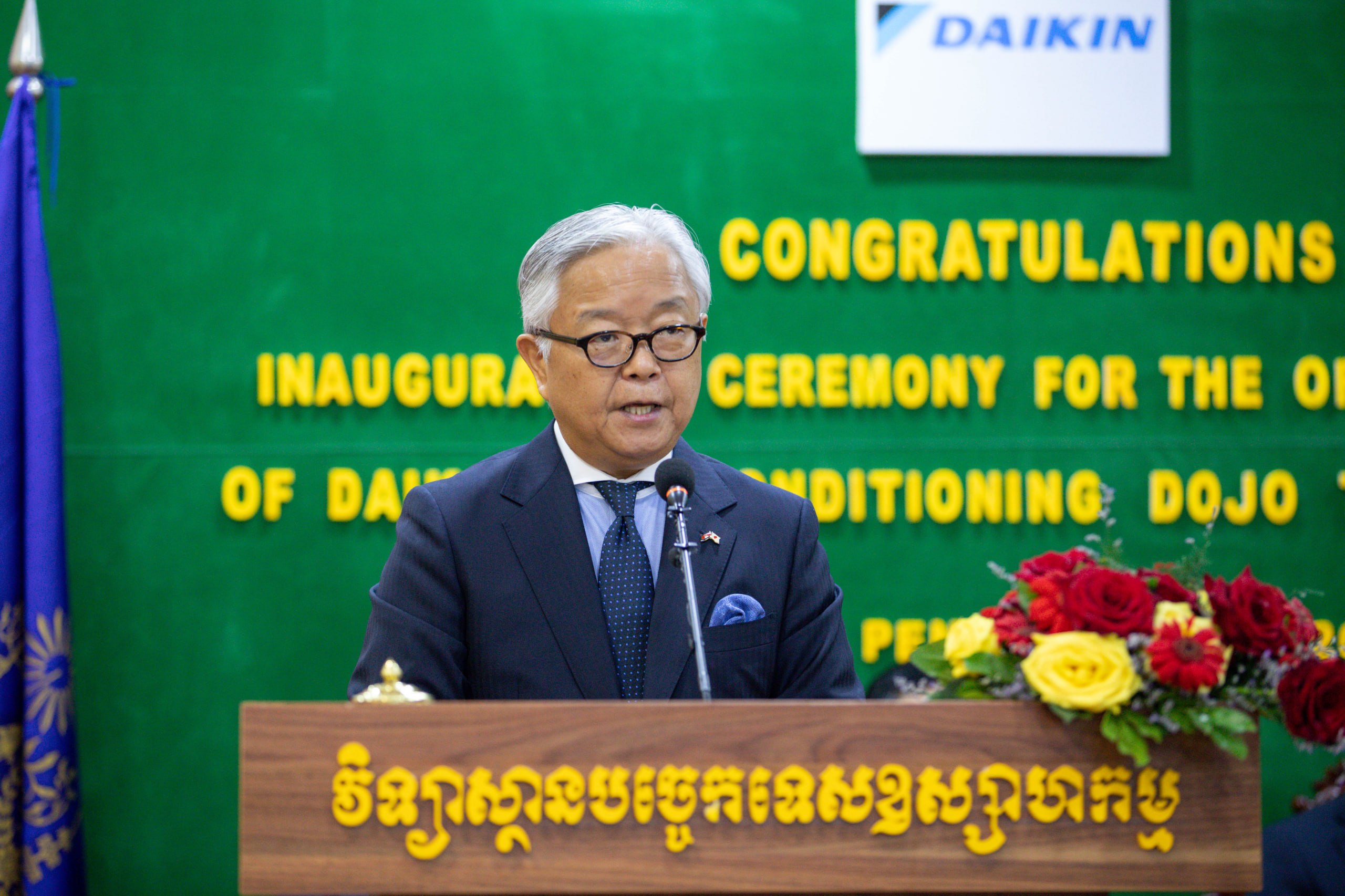 ឯកឧត្ដមរដ្ឋមន្រ្តីក៏បានកោតសរសើរនិងអរគុណចំពោះក្រុមហ៊ុន Daikin Airconditioning(Cambodia)Co.,Ltd និងបានចាត់ទុកការបង្កើតមជ្ឈមណ្ឌលនេះ ជាការចាំបាច់នៃយុទ្ធសាស្ត្រដ៏សំខាន់ និងទាន់ពេលវេលាទៅតាមតម្រូវការទីផ្សារ ហើយស្របជាមួយយុទ្ធសាស្ត្របញ្ចកោណ ដំណាក់កាលទី១ របស់រាជរដ្ឋាភិបាល ផែនការយុទ្ធសាស្ត្រ និងគោលនយោបាយផ្សេងៗរបស់ក្រសួង ជាពិសេសកម្មវិធី TVET ១,៥ លាននាក់ ដោយឯកឧត្តមបានគូសបញ្ជាក់ថា តាមរយៈកិច្ចសហការជាមួយក្រុមហ៊ុន Daikin កម្ពុជាកំពុងបញ្ចូលនវានុវត្តន៍ជប៉ុន និង “ស្តង់ដាមាស” នៃគុណភាពជប៉ុនចូលទៅក្នុងការអភិវឌ្ឍធនធានមនុស្ស ព្រោះក្រុមហ៊ុនមិនត្រឹមតែជំនាញលើម៉ាស៊ីនត្រជាក់តែមួយមុខប៉ុណ្ណោះទេ ប៉ុន្តែក៏ឈានមុខគេលំដាប់ពិភពលោកក្នុងដំណោះស្រាយនិរន្តរភាពបរិស្ថាន ដែលក្នុងនោះប្រព័ន្ធកម្ដៅ ខ្យល់ចេញចូល ម៉ាស៊ីនត្រជាក់ គឺជាផ្នែកមួយនៃបច្ចេកវិទ្យារបស់ខ្លួន។