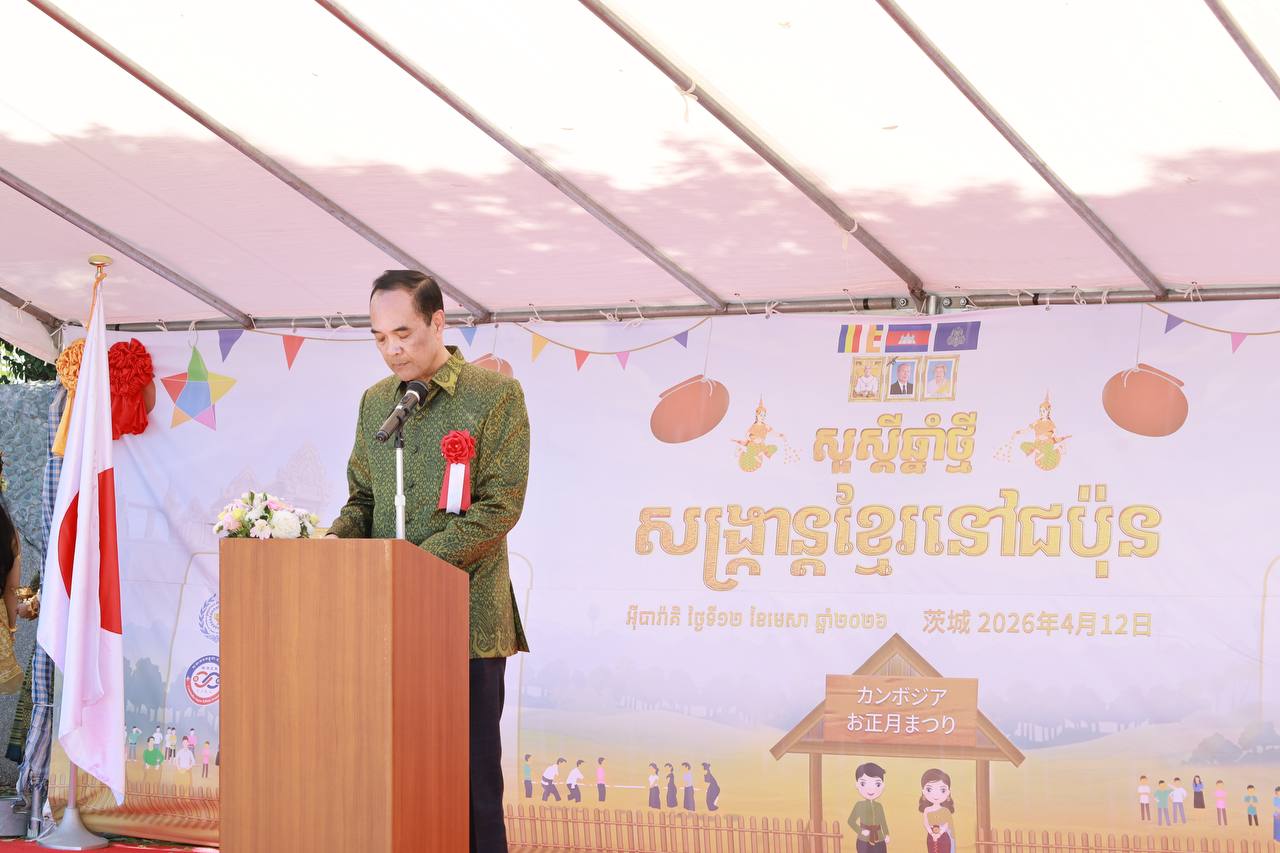 (ជប៉ុន)៖ នាថ្ងៃអាទិត្យ ទី១២ ខែមេសា ឆ្នាំ២០២៦ ក្រសួងការងារ និងបណ្តុះបណ្តាលវិជ្ជាជីវៈ បានរៀបចំកម្មវិធី “សង្រ្កាន្តខ្មែរនៅជប៉ុន” ដើម្បីអបអរសាទរពិធីបុណ្យចូលឆ្នាំថ្មីប្រពៃណីជាតិខ្មែរ ឆ្នាំមមី អដ្ឋស័ក ព.ស. ២៥៧០។ កម្មវិធីនេះបានប្រព្រឹត្តទៅនៅសួន Keyaki ទីក្រុងយូគិ ខេត្តអ៊ីបារ៉ាគិ ប្រទេសជប៉ុន ក្រោមអធិបតីភាព ឯកឧត្តម ហាំង តុលា រដ្ឋលេខាធិការ និងជាតំណាងដ៏ខ្ពង់ខ្ពស់ ឯកឧត្តម ហេង សួរ រដ្ឋមន្ត្រីក្រសួងការងារ និងបណ្តុះបណ្តាលវិជ្ជាជីវៈ ដោយមានការអញ្ជើញចូលរួមពីភ្ញៀវកិត្តិយសជាតិ-អន្តរជាតិ ព្រមទាំងបងប្អូនសហគមន៍ខ្មែរ និស្សិត កម្មសិក្សាការី និងពលករ សរុបប្រមាណជិត ៥ ០០០នាក់។