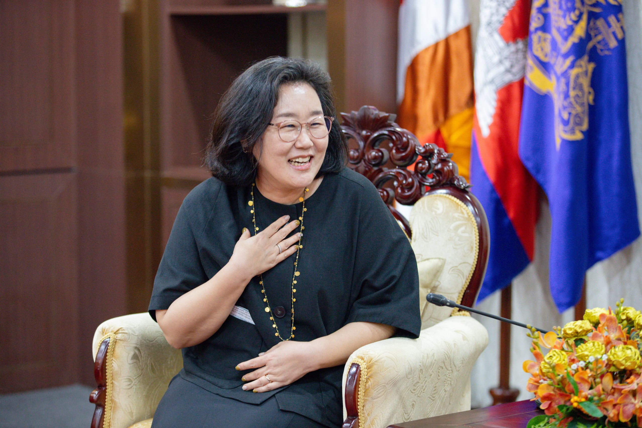 លោកស្រីបានអរគុណយ៉ាងស្មោះស្ម័គ្រចំពោះការប្តេជ្ញាចិត្ត និងកោតសរសើរចំពោះភាពជាអ្នកដឹកនាំដ៏រឹងមាំ ប្រកបដោយសមត្ថភាពពេញលេញរបស់ឯកឧត្តម ហេង សួរ ដែលកំពុងធ្វើឱ្យមានការផ្លាស់ប្តូរជាវិជ្ជមានយ៉ាងពិតប្រាកដក្នុងវិស័យការងារ ដោយលោកស្រីជឿជាក់ថា ប្រទេសកម្ពុជានឹងនៅតែបន្តការអភិវឌ្ឍ ហើយកិច្ចសហប្រតិបត្តិការរវាងប្រទេសទាំងពីរនឹងកាន់តែជិតស្និទ្ធថែមទៀត។