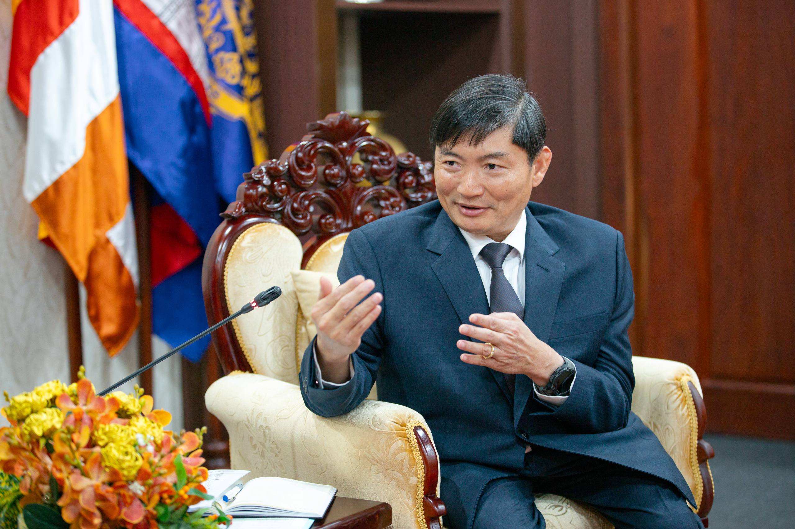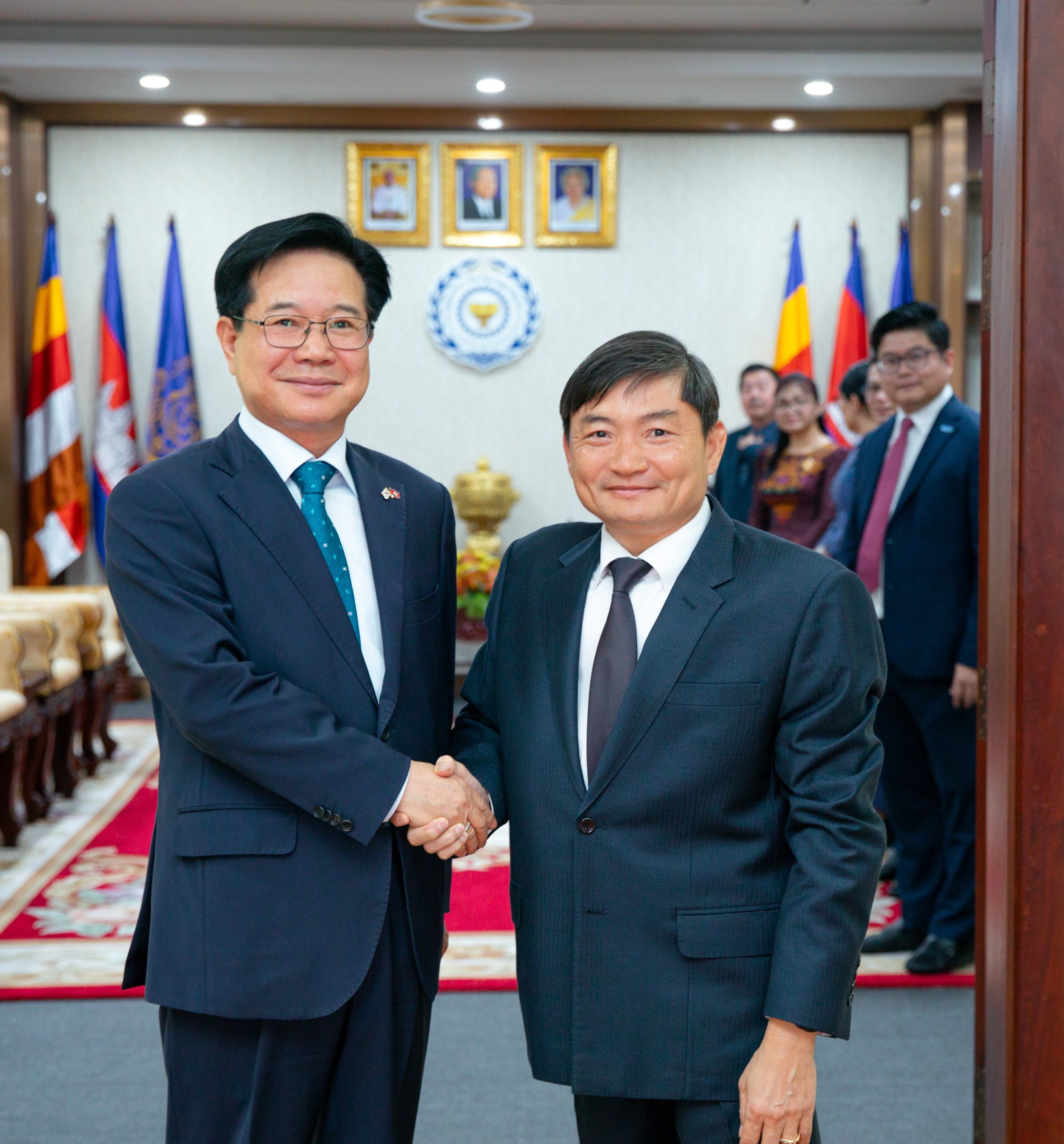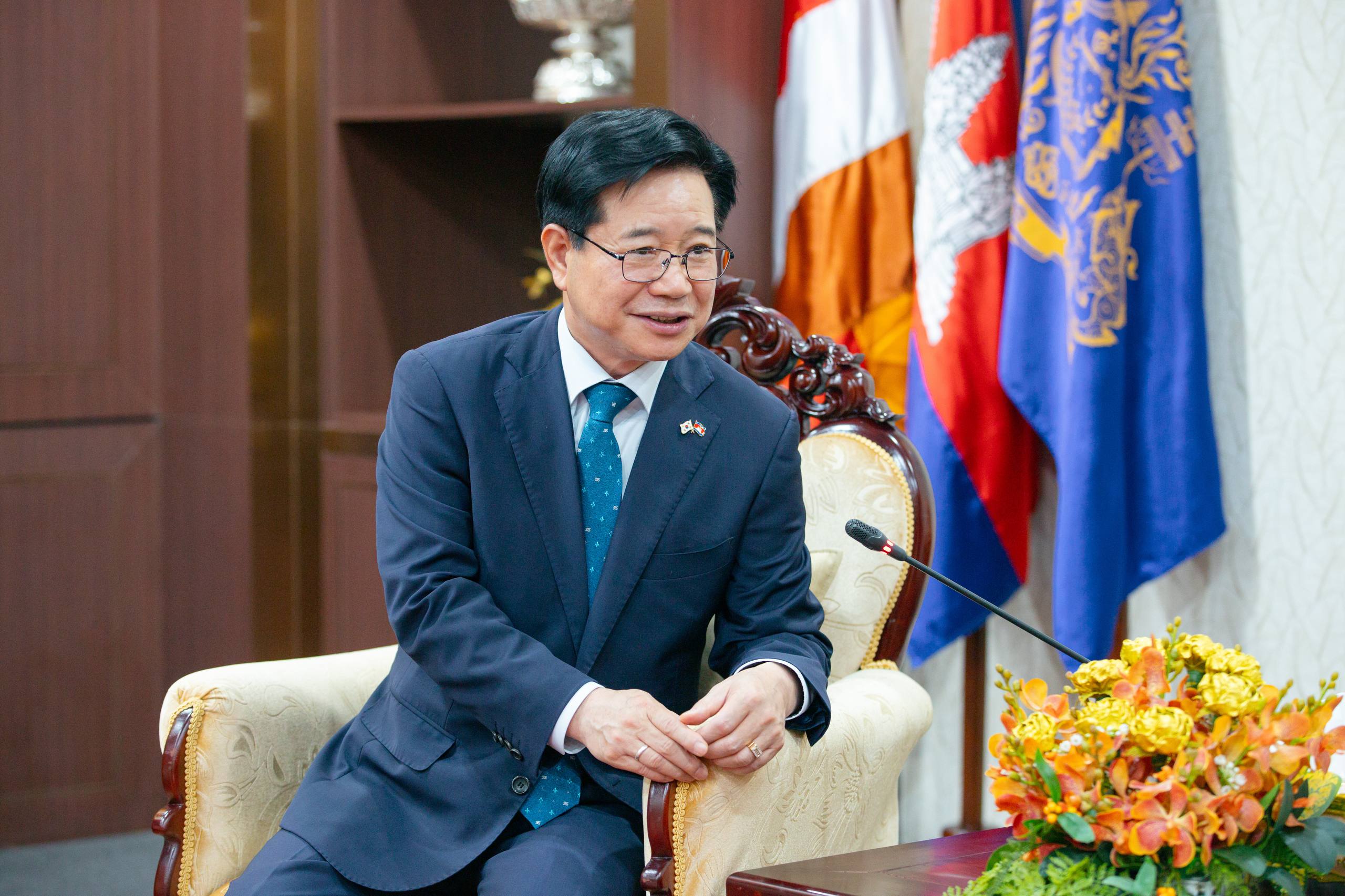 ឭ(ភ្នំពេញ)៖ ឯកឧត្ដម ហេង សួរ រដ្ឋមន្ត្រីក្រសួងការងារនិងបណ្ដុះបណ្ដាលវិជ្ជាជីវៈ បានទទួលជួបសម្តែងការគួរសម និងពិភាក្សាការងារជាមួយឯកឧត្តម គីម ឆាងយ៉ុង (KIM Chang Yong) ឯកអគ្គរដ្ឋទូតថ្មីនៃសាធារណរដ្ឋកូរ៉េប្រចាំកម្ពុជា នៅទីស្តីការក្រសួង នាព្រឹកថ្ងៃទី២១ ខែមេសា ឆ្នាំ២០២៦ ដើម្បីពិភាក្សាពីការលើកកម្ពស់សិទ្ធិពលករ និងពីការស្វែងរកឱកាសបង្កើនកិច្ចសហប្រតិបត្តិការលើការអភិវឌ្ឍធនធានមនុស្ស ការបញ្ជូនកម្លាំងពលកម្ម និងបង្កើតបរិយាកាសកាន់តែប្រសើរដល់អ្នកវិនិយោគ។