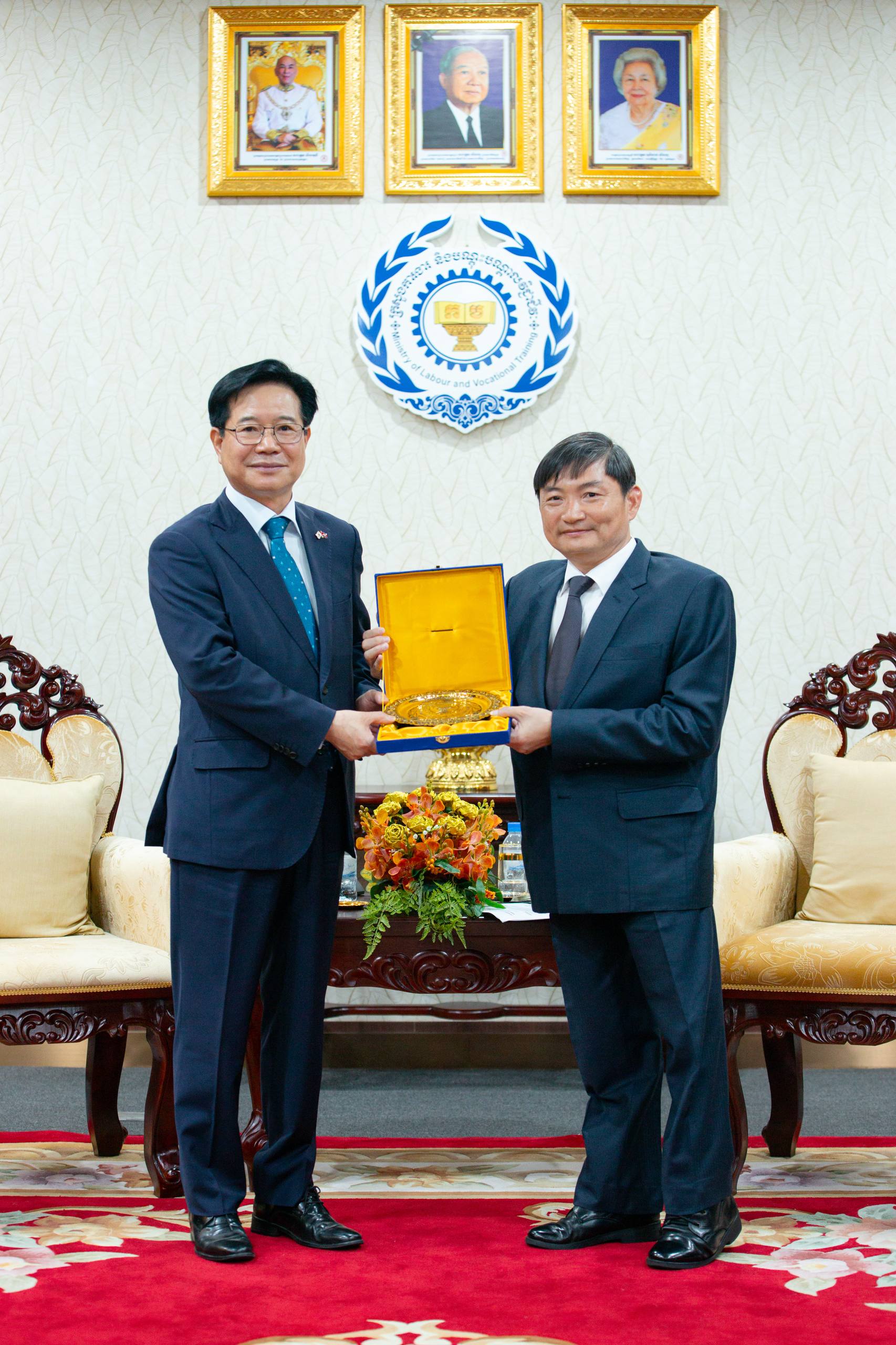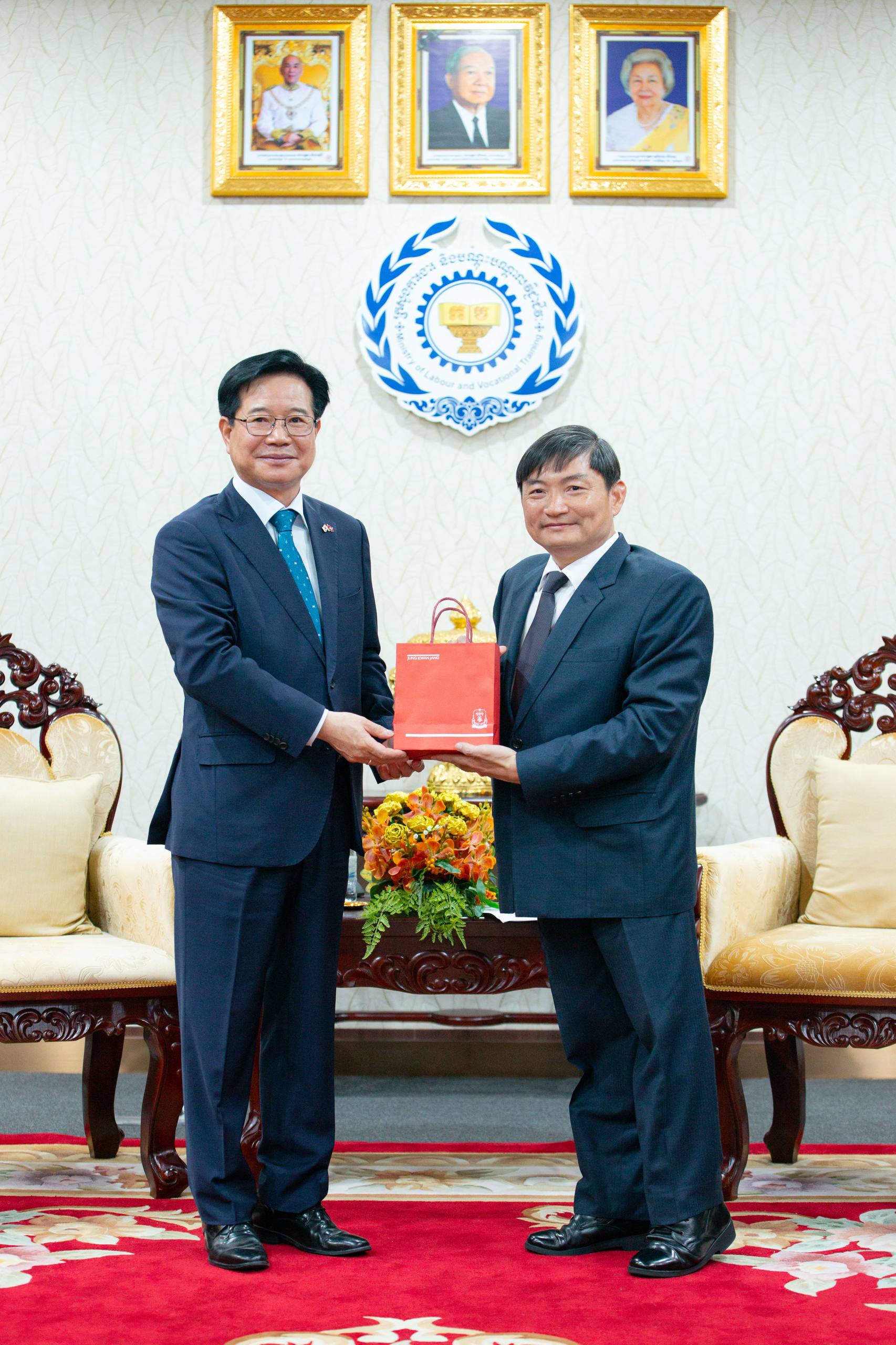 ឯកឧត្ដមបានគូសបញ្ជាក់ពីទំនាក់ទំនងដ៏រឹងមាំ និងការរួមចំណែកដ៏សំខាន់របស់កូរ៉េក្នុងការអភិវឌ្ឍនៅកម្ពុជា ជាពិសេស ការអភិវឌ្ឍហេដ្ឋារចនាសម្ព័ន្ធ, ការអប់រំបណ្តុះបណ្តាលបច្ចេកទេសនិងវិជ្ជាជីវៈ (TVET), សុវត្ថិភាព និងសុខភាពការងារ, ការអភិវឌ្ឍសេវាកម្មការងារ និងប្រព័ន្ធឌីជីថល ក៏ដូចជាវិស័យសន្តិសុខសង្គម និងការស្តារសមត្ថភាពឡើងវិញជាដើម។ ជាក់ស្តែង កាលពីថ្ងៃទី២០ ខែមេសា ម្សិលមិញ ក្រសួងការងារនិងបណ្ដុះបណ្ដាលវិជ្ជាជីវៈ និង KOICA បានចុះហត្ថលេខាលើកំណត់ហេតុនៃកិច្ចពិភាក្សាស្តីពី “គម្រោងអភិវឌ្ឍកម្លាំងពលកម្មជំនាញ ដើម្បីឆ្លើយតបតម្រូវការឧស្សាហកម្មនៅកម្ពុជា”។