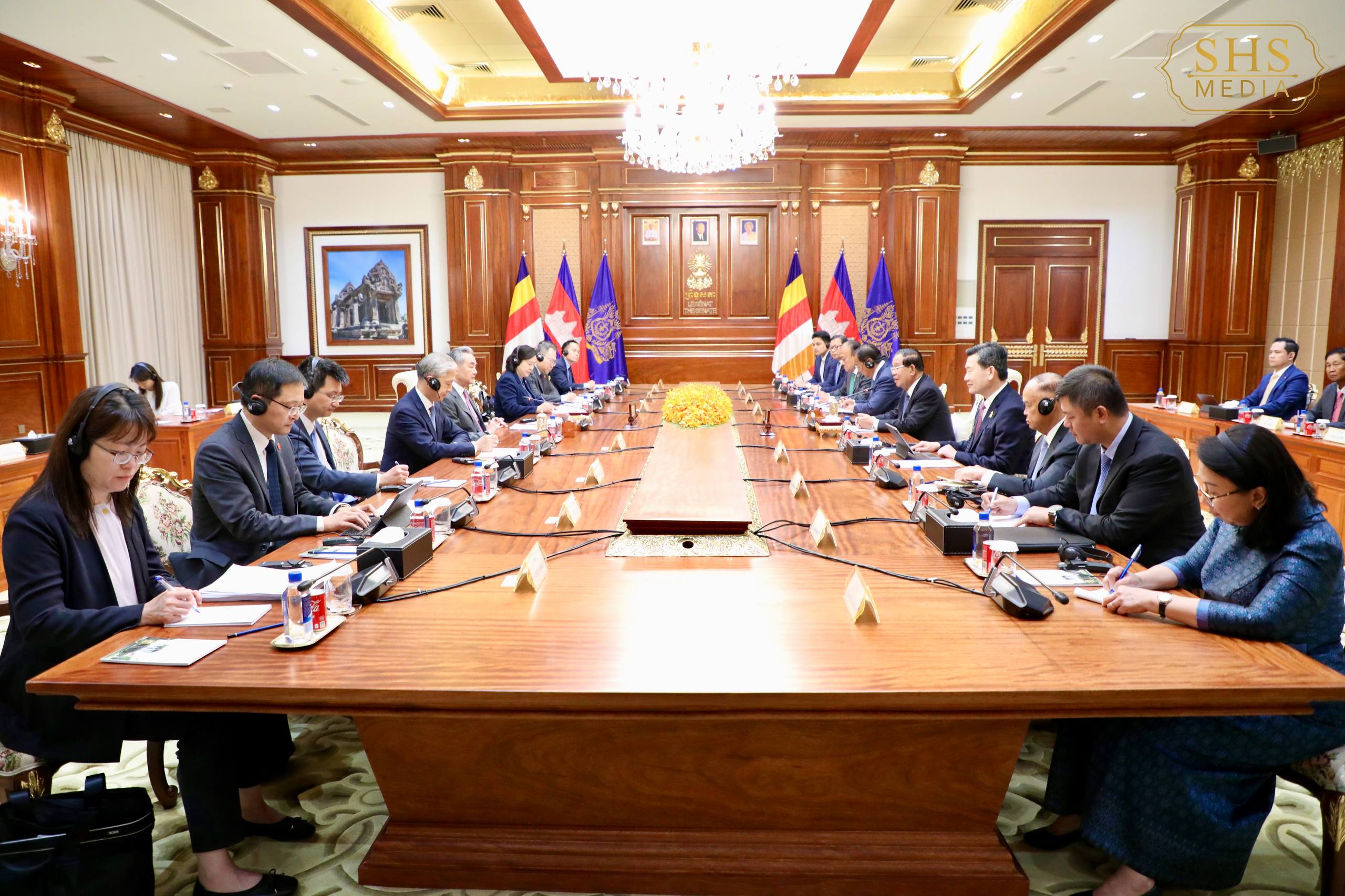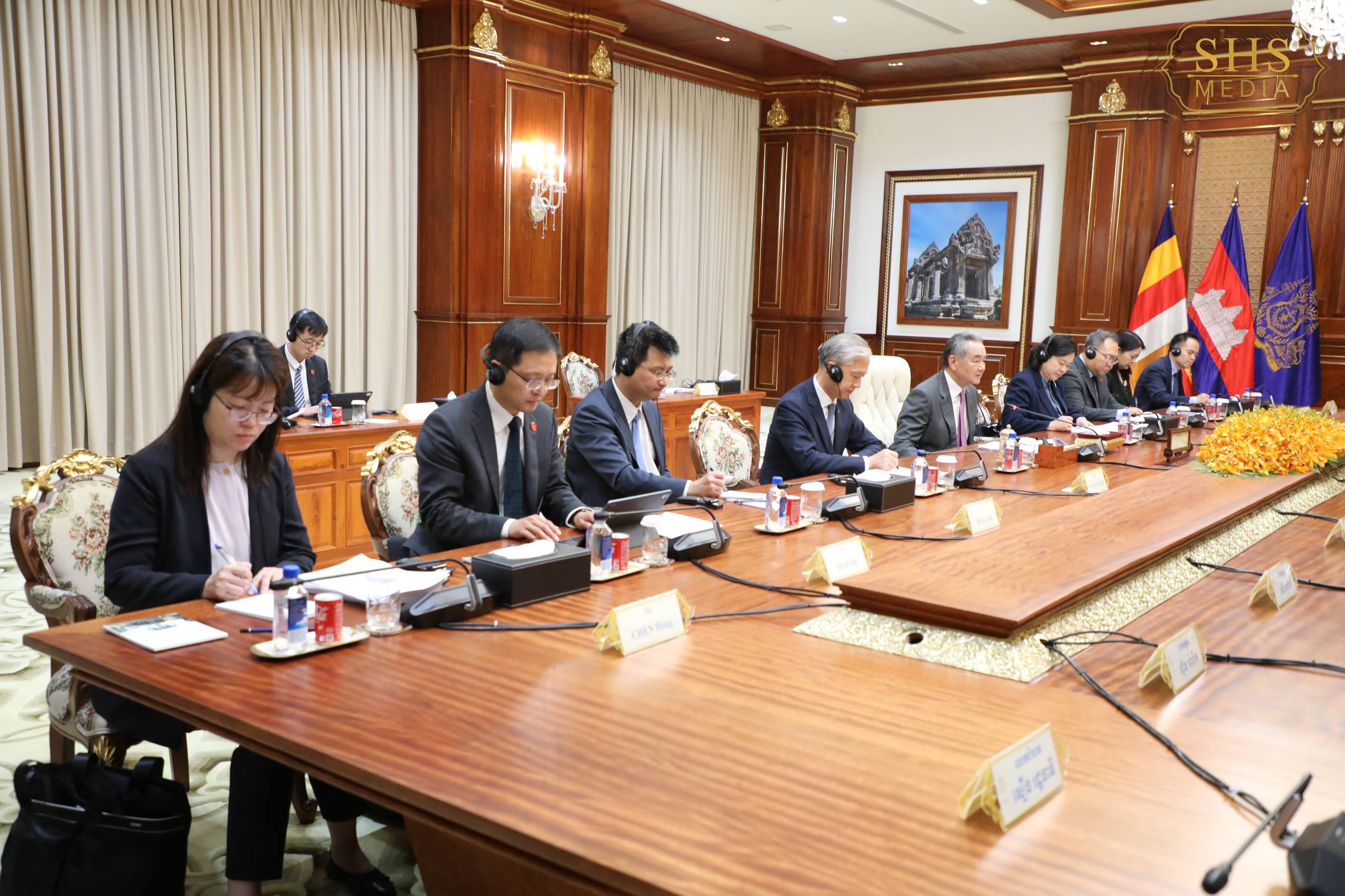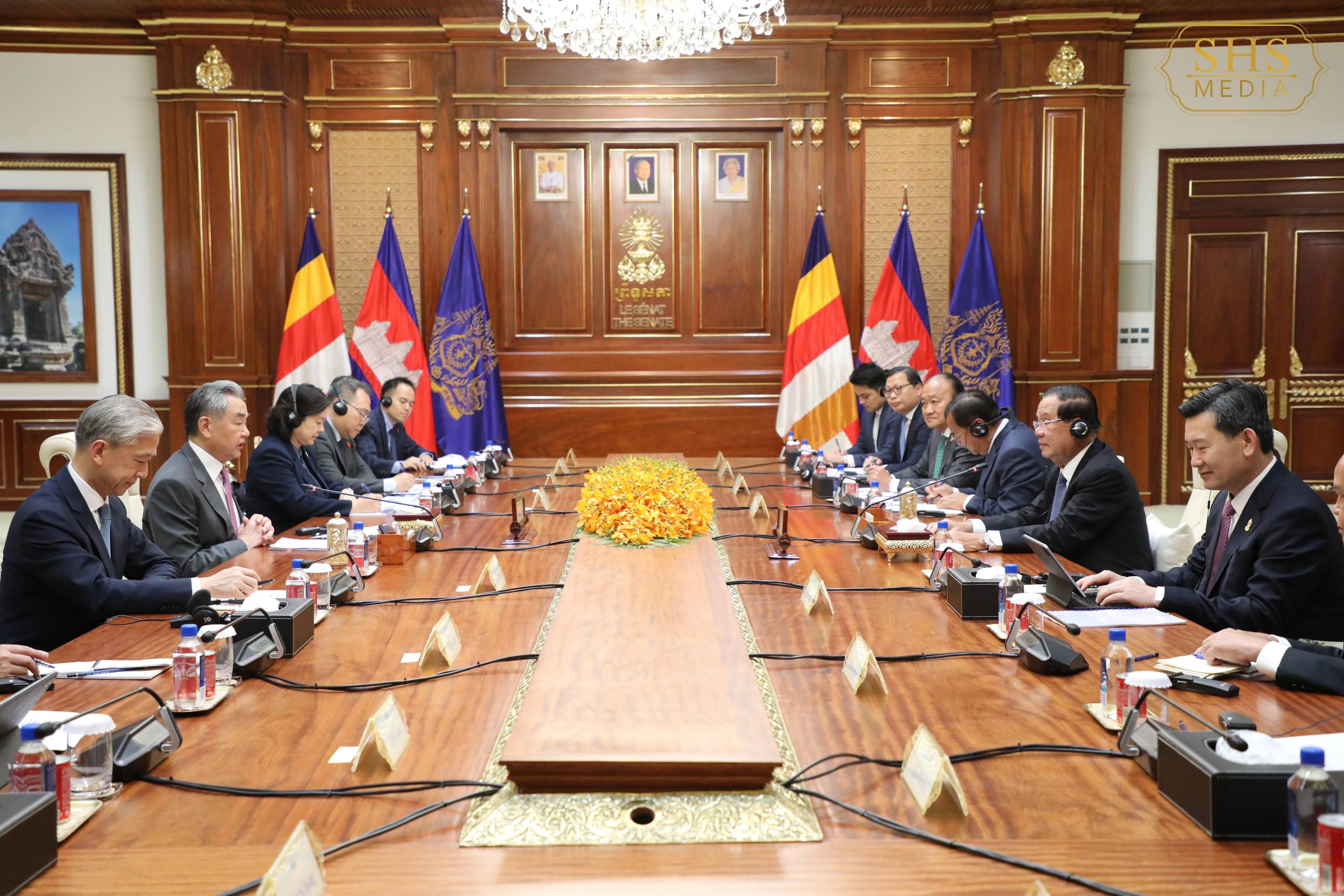 ភ្នំពេញ:សម្តេចអគ្គមហាសេនាបតីតេជោ ហ៊ុន សែន ប្រមុខរដ្ឋស្តីទីនៃព្រះរាជាណាចក្រកម្ពុជា អនុញ្ញាតឱ្យ ឯកឧត្តម វ៉ាង យី (Wang Yi) រដ្ឋមន្ត្រីការបរទេស នៃសាធារណរដ្ឋប្រជាមានិតចិន និងគណៈប្រតិភូ ចូលជួបសម្ដែងការគួរសម នៅវិមានសាមគ្គីភាពនៃព្រឹទ្ធសភាជាតិ រាជធានីភ្នំពេញ ថ្ងៃទី២៣ ខែមេសា ឆ្នាំ២០២៦។