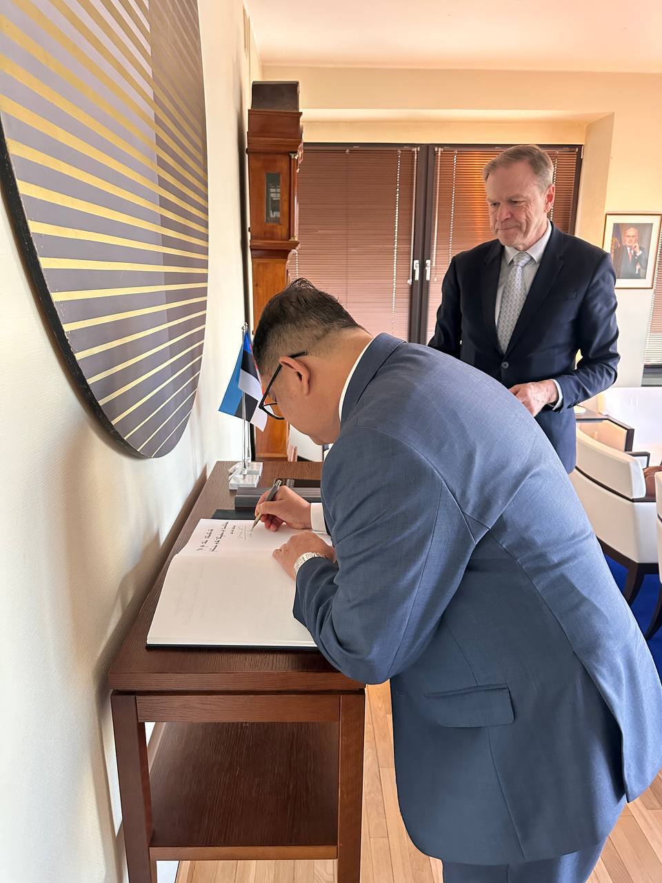 ឯកឧត្តម ជា ច័ន្ទបរិបូរណ៌ ឯកអគ្គរាជទូតតែងតាំងនៃព្រះរាជាណាចក្រកម្ពុជា ប្រចាំ សាធារណរដ្ឋអេស្តូនី បានចូលប្រគល់ ព្រះរាជសារតាំង ព្រះមហាក្សត្រកម្ពុជា ជូនចំពោះប្រធានាធិបតីអេស្តូនី ក្នុងពិធីផ្លូវការដ៏មានសារៈសំខាន់ ដែលសម្គាល់ការចាប់ផ្តើមបេសកកម្មការទូតរបស់លោក
