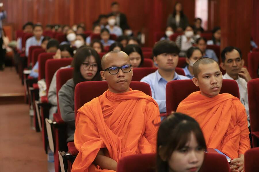 នៅព្រឹកថ្ងៃទី៤ ខែកញ្ញា ឆ្នាំ២០២៤ លោក ប៉ែន បូណា រដ្ឋមន្រ្តីប្រតិភូអមនាយករដ្ឋមន្រ្តី និងជាប្រធានអង្គភាពអ្នកនាំពាក្យរាជរដ្ឋាភិបាល និងលោក តាន់ ហ្សង់ហ្រ្វង់ស័រ រដ្ឋមន្ត្រីប្រតិភូអមនាយករដ្ឋមន្រ្តី ទទួលបន្ទុកកិច្ចការការបរទេស និងសហប្រតិបត្តិការអន្តរជាតិ អញ្ជើញជាអធិបតី និងជាវាគ្មិនកិត្តិយសផ្តល់បាឋកថា ស្តីពី «ការចូលរួមរបស់យុវជនដើម្បីឆ្ពោះទៅសម្រេចចក្ខុវិស័យកម្ពុជា ឆ្នាំ២០៥០» នៅសាកលវិទ្យាល័យជាតិគ្រប់គ្រង (NUM)។ បាឋកថា នេះក៏មានការអញ្ជើញជាគណៈអធិបតីពីលោកសាស្រ្តាចារ្យបណ្ឌិត ហោ ប៉េង សាកលវិទ្យាធិការ សាស្ត្រាចារ្យ ព្រមទាំងមានការនិមន្ត និងអញ្ជើញចូលរួមពីសមណនិស្សិត និងនិស្សិតថ្នាក់បរិញ្ញាបត្រ បរិញ្ញាបត្រជាន់ខ្ពស់ប្រមាណ ២៥០ អង្គ/នាក់៕