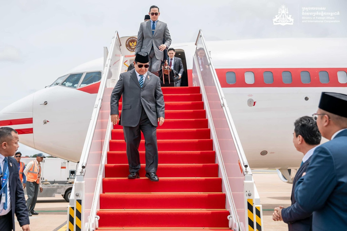 លោក Prabowo Subianto រដ្ឋមន្ត្រីក្រសួងការពារជាតិ និងជាប្រធានាធិបតីជាប់ឆ្នោតនៃសាធារណរដ្ឋឥណ្ឌូណេស៊ី អញ្ជើញមកបំពេញទស្សនកិច្ចការងារនៅព្រះរាជាណាចក្រកម្ពុជា នៅថ្ងៃទី៦ ខែកញ្ញា ឆ្នាំ២០២៤។