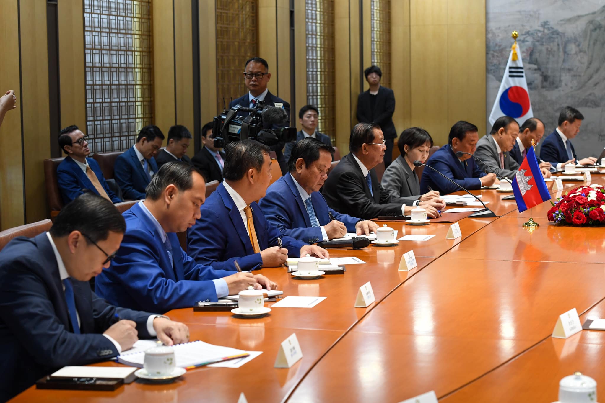នៅព្រឹកថ្ងៃទី១០ ខែកញ្ញា ឆ្នាំ២០២៤នេះ សម្តេចអគ្គមហាសេនាបតីតេជោ ហ៊ុន សែន ប្រធានព្រឹទ្ធសភានៃព្រះរាជាណាចក្រកម្ពុជា បានអញ្ជើញជួបពិភាក្សាការងារជាមួយលោក អ៊ូ វ៉ន់ស៊ីក (Woo Won-Shik) ប្រធានរដ្ឋសភានៃសាធារណរដ្ឋកូរ៉េ នៅវិមានរដ្ឋសភាសាធារណរដ្ឋកូរ៉េ។