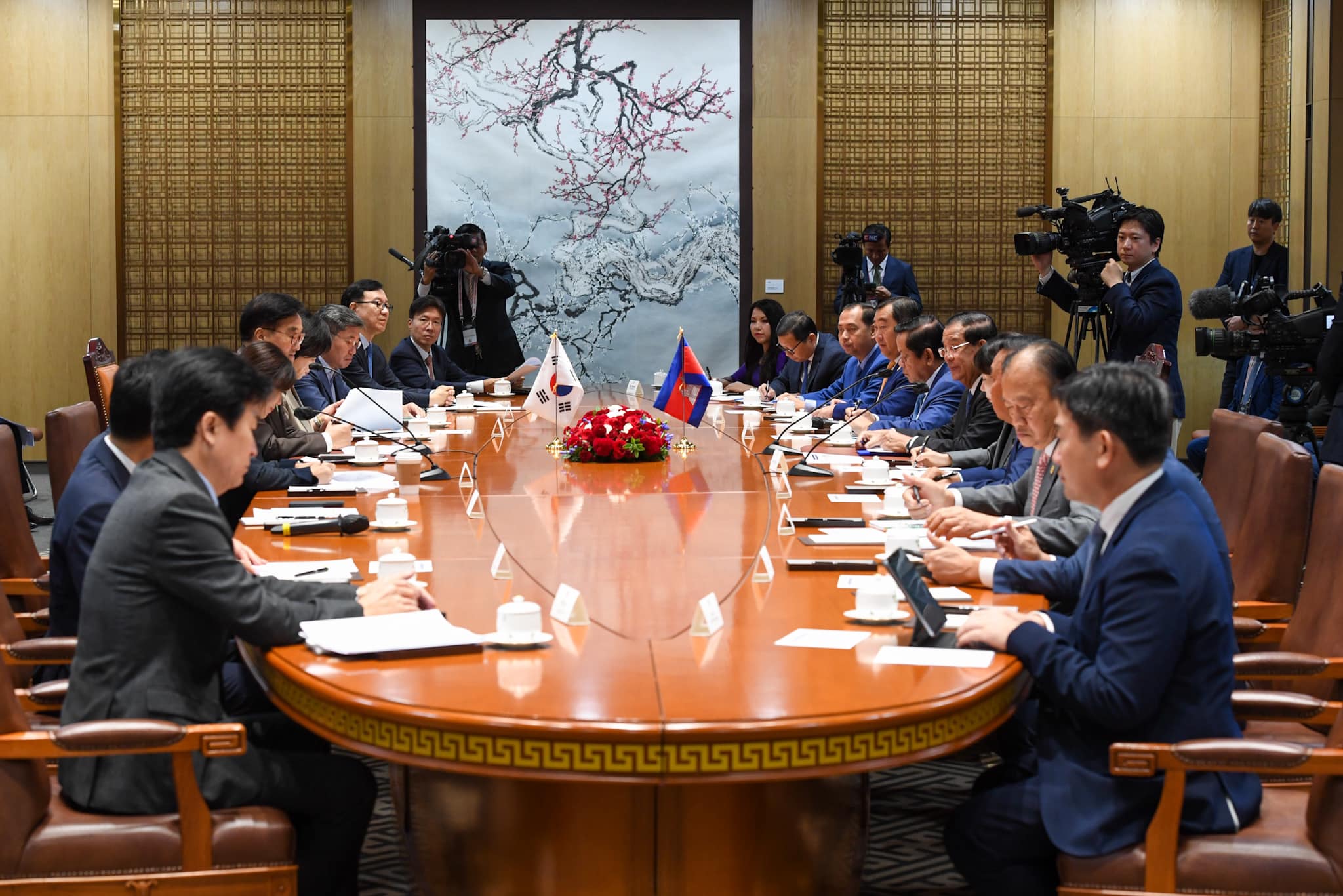 ជាកិច្ចចាប់ផ្ដើមលោកWoo Won-Shik ប្រធានរដ្ឋសភាកូរ៉េ បានសម្តែងការស្វាគមន៍យ៉ាងកក់ក្តៅ ចំពោះសម្តេចតេជោ ប្រធានព្រឹទ្ធសភា និងគណៈប្រតិភូដែលបានអញ្ជើញបំពេញទស្សនកិច្ចនៅសាធារណរដ្ឋកូរ៉េ ជាពិសេសគឺបានអញ្ជើញមកវិមានរដ្ឋសភាកូរ៉េ។ ប្រធានសភាកូរ៉េ បានសម្តែងការកោតសរសើរចំពោះការដឹកនាំរបស់សម្ដេចតេជោ ហ៊ុន សែន ដែលបានដឹកនាំរាជរដ្ឋាភិបាលកម្ពុជា ក្នុងឋានៈជានាយករដ្ឋមន្ត្រីអស់រយៈពេលដ៏យូរ ដែលនាំកម្ពុជាសម្រេចបានសុខសន្តិភាព និងការរីកចម្រើន។ លោកបានអបអរសាទរជាថ្មីចំពោះ សម្ដេចតេជោ ដែលត្រូវបានជ្រើសរើសជាប្រធានព្រឹទ្ធសភា។
