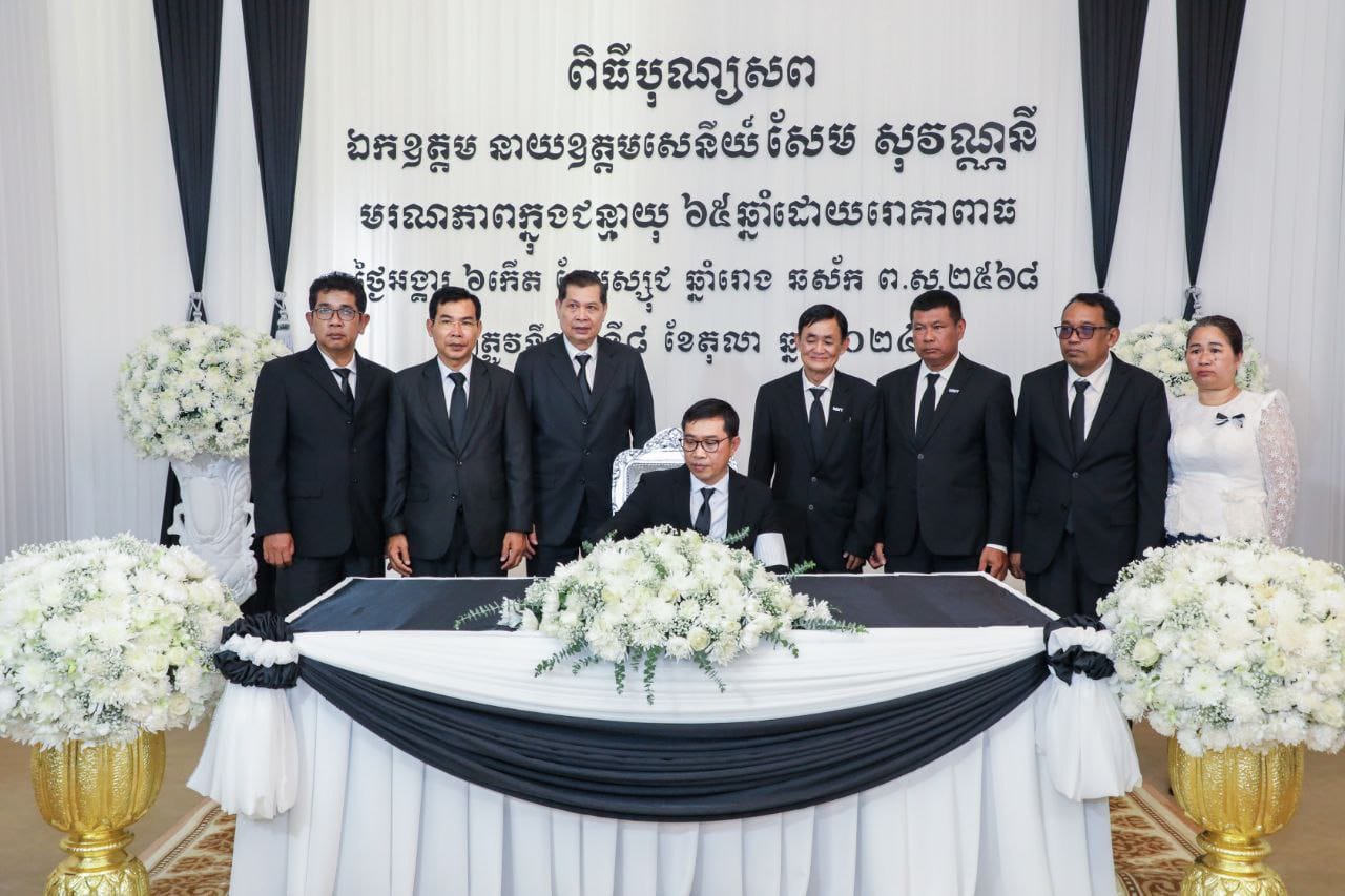 (ភ្នំពេញ)៖ ឯកឧត្តម ម៉ន គ្រីយ៉ា រដ្ឋលេខាធិការក្រសួងការងារ និងបណ្តុះបណ្តាលវិជ្ជាជីវៈតំណាងដ៏ខ្ពង់ខ្ពស់ ឯកឧត្តម ហេង សួរ រដ្ឋមន្រ្តីក្រសួងការងារ និងបណ្តុះបណ្តាលវិជ្ជាជីវៈ បានអញ្ជើញគោរពវិញ្ញាណក្ខន្ធសព ឯកឧត្តមនាយឧត្តមសេនីយ៍ សែម សុវណ្ណនី អនុប្រធានទី១ គណៈកម្មាធិការជាតិ និងជាអគ្គនាយកមជ្ឈមណ្ឌលជាតិរក្សាសន្តិភាព ដែលបានទទួលមរណភាព នៅថ្ងៃអង្គារ ៦កើត ខែអស្សុជ ឆ្នាំរោង ឆស័ក ព.ស. ២៥៦៨ ត្រូវនឹងថ្ងៃទី៨ ខែតុលា ឆ្នាំ២០២៤ វេលាម៉ោង ៦: ០០នាទី ក្នុងជន្មាយុ ៦៥ឆ្នាំ ដោយរោគាពាធ។