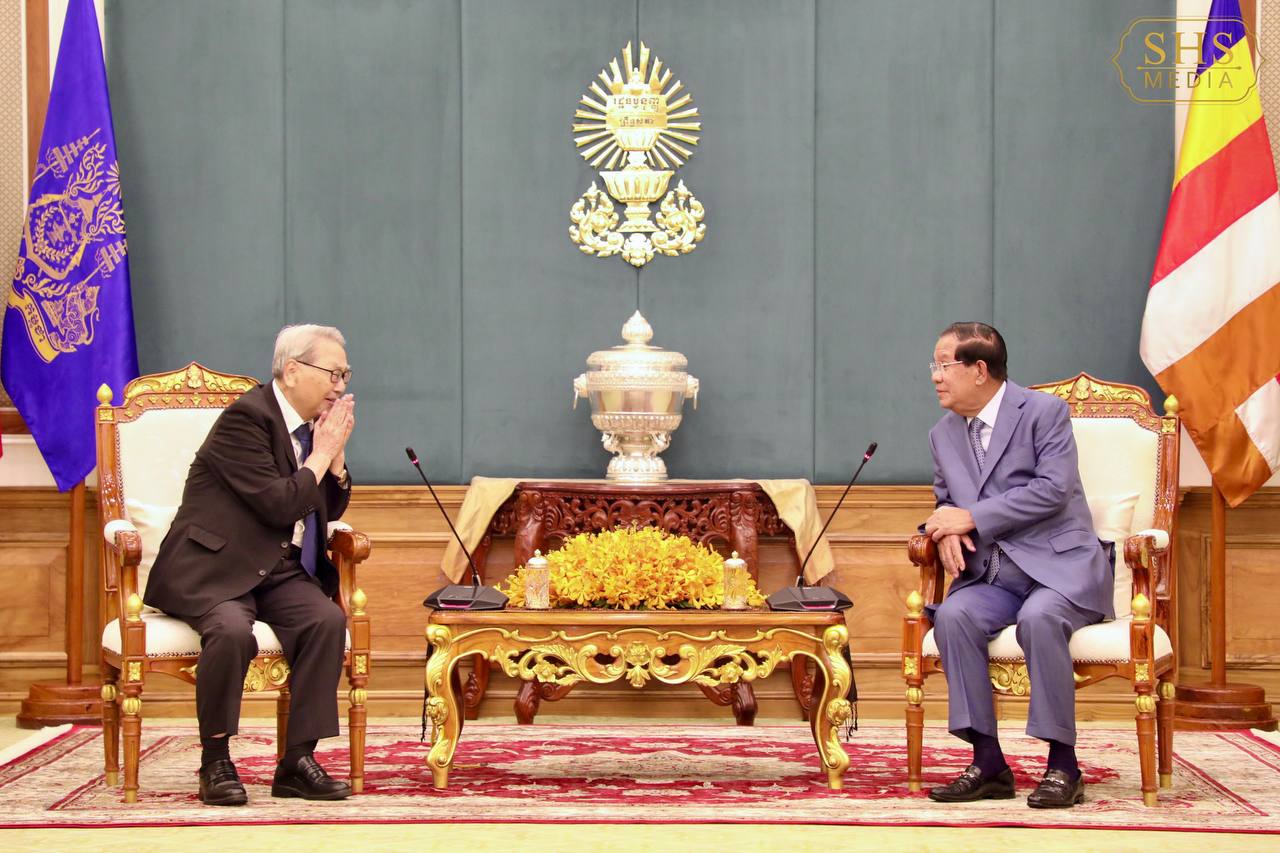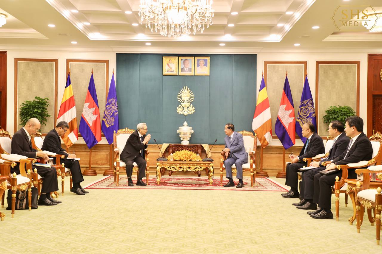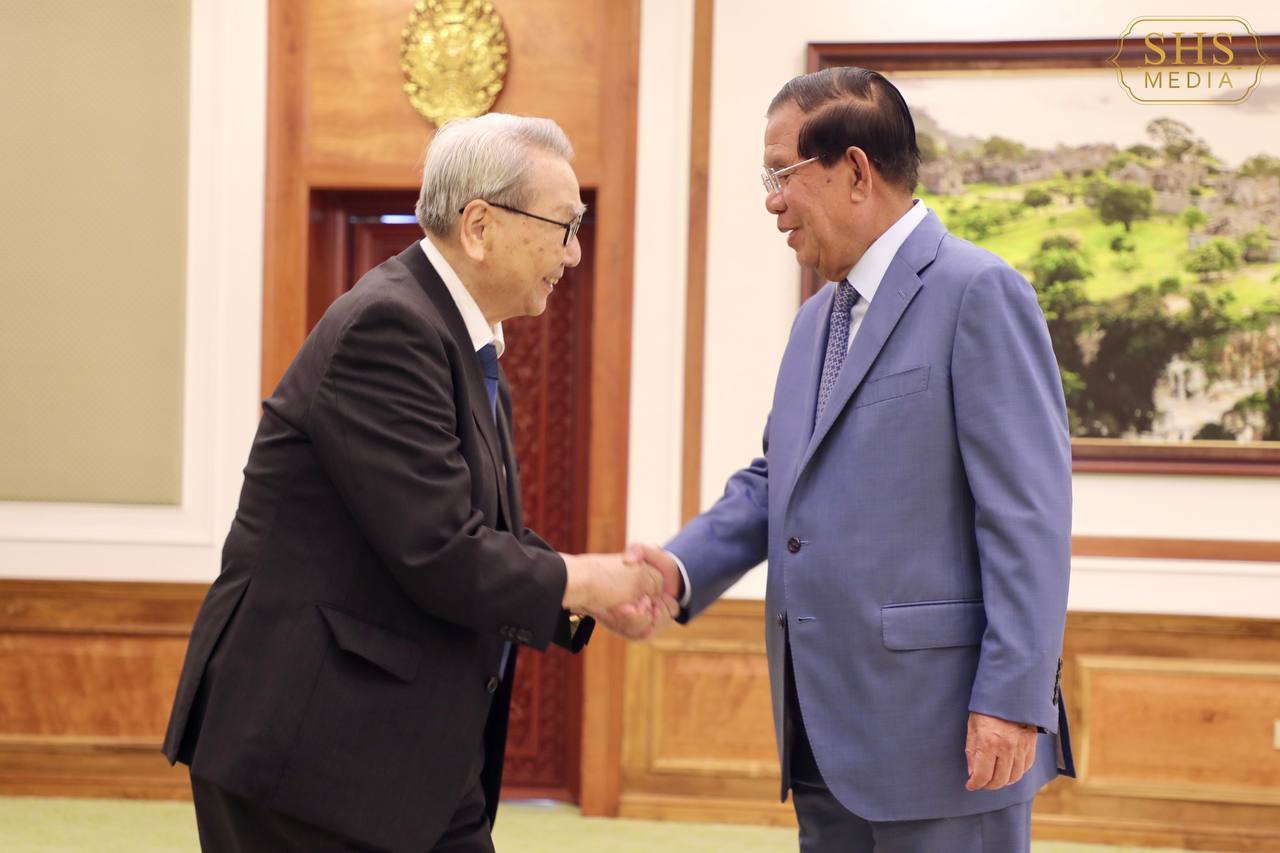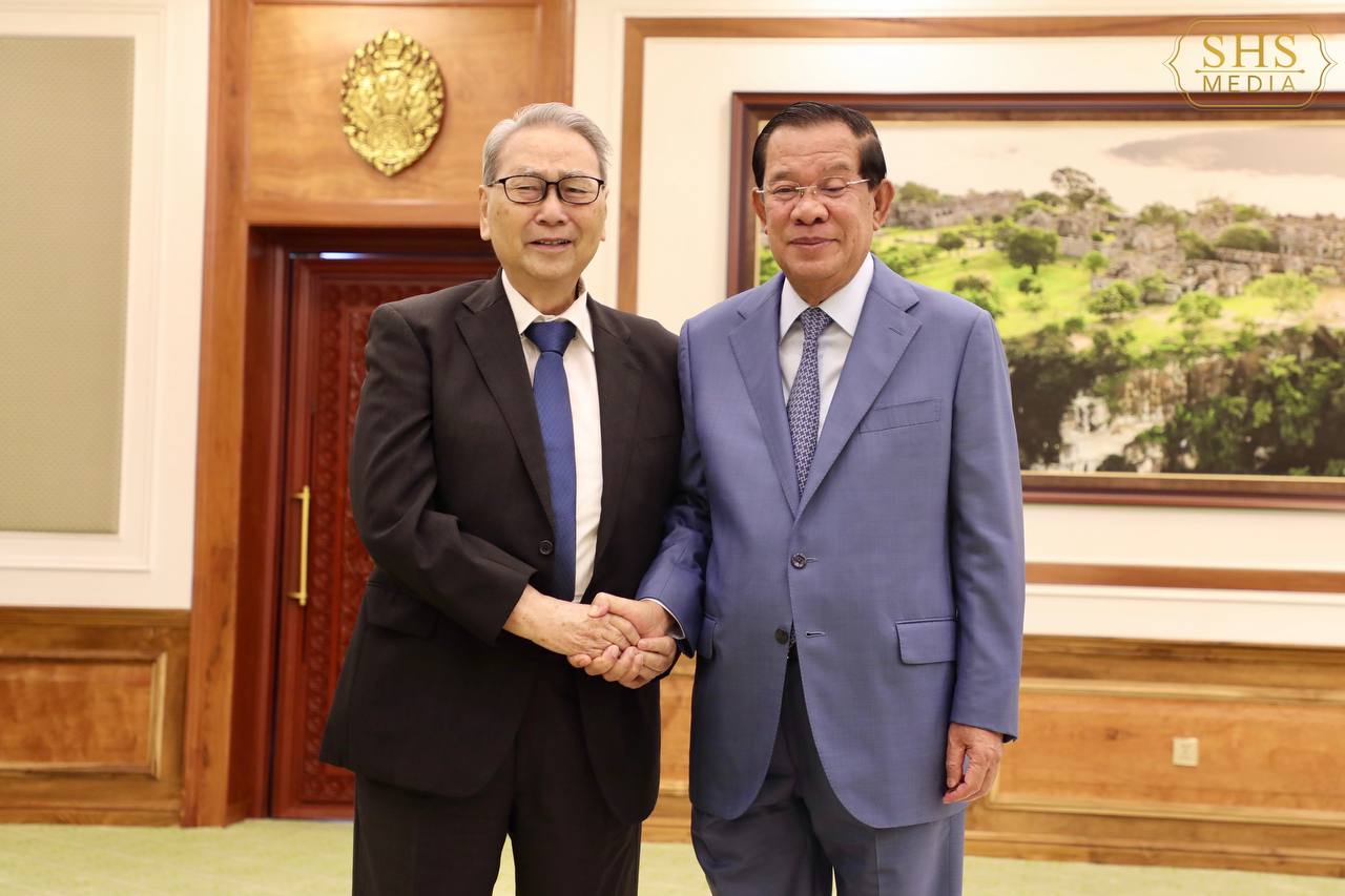 សម្តេចអគ្គមហាសេនាបតីតេជោ ហ៊ុន សែន ប្រធានព្រឹទ្ធសភានៃព្រះរាជាណាចក្រកម្ពុជា អនុញ្ញាតឱ្យ លោក កាត់ស៊ូហ៊ីរ៉ូ ស៊ីណូហារ៉ា (KATSUHIRO SHINOHARA) ប្រធានតំណាងមូលនិធិគាំទ្រការអប់រំអន្តរជាតិកម្ពុជា ចូលជួបសម្តែងការគួរសម និងពិភាក្សាការងារ នៅវិមានព្រឹទ្ធសភា រាជធានីភ្នំពេញ។