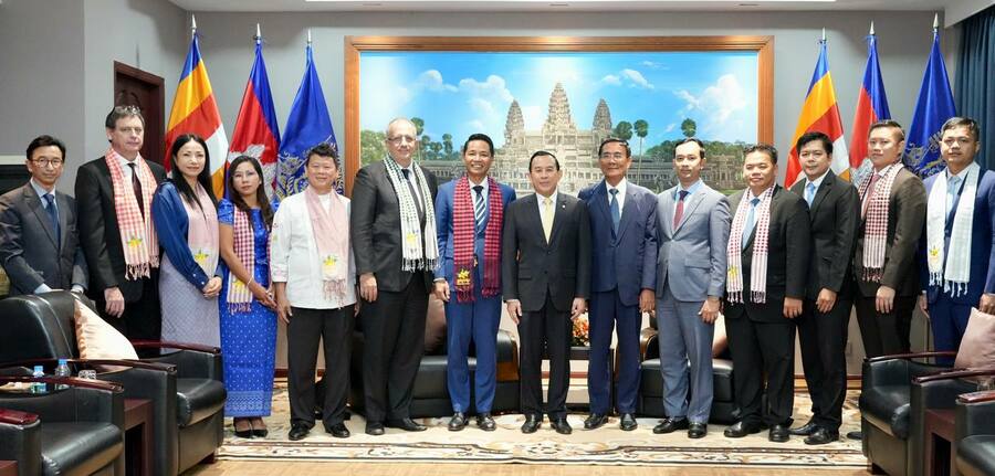 ល្ងាចថ្ងៃសុក្រ ទី១១ ខែតុលា ឆ្នាំ២០២៤ លោក ហួត ហាក់ រដ្ឋមន្ត្រីក្រសួងទេសចរណ៍ បានអនុញ្ញាតឱ្យលោក ឌិន សុមេធារិទ្ធ ប្រធានសហព័ន្ធទេសចរណ៍កម្ពុជា និងសហការី ចូលជួបសម្តែងការគួរសម និងពិភាក្សាការងារ ដើម្បីពង្រឹងកិច្ចសហប្រតិបត្តិការ និងជំរុញកំណើនទេសចរណ៍ ប្រកបដោយនិរន្តរភាព និងលើកកម្ពស់គុណភាពសេវាកម្ម ពិសេសវិស័យបដិសណ្ឋារកិច្ចនៅកម្ពុជា នៅទីស្តីការក្រសួងទេសចរណ៍។